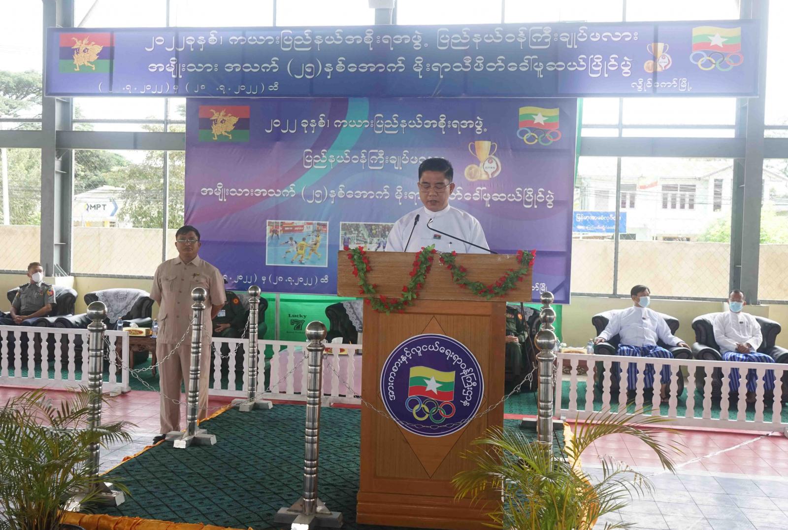 ရှေးဦးစွာ ကယားပြည်နယ်အစိုးရအဖွဲ့၊ ပြည်နယ်ဝန်ကြီးချုပ် ဦးဇော်မျိုးတင်အား ပြိုင်ဝင်အသင်းများက အလေးပြုကြပြီး ပြည်နယ်ဝန်ကြီးချုပ်က အဖွင့်အမှာစကား ပြောကြားရာတွင် နိုင်ငံတော်မှ ချမှတ်ထားသည့် အားကစားဆိုင်ရာ မူဝါဒလမ်းညွှန်ချက်များနှင့်အညီ ကယားပြည် နယ်၏ အားကစားကဏ္ဍ ဘက်စုံတိုးတက်မြင့်မားလာစေရန်အတွက် ပြည်နယ်အတွင်း အားကစားပြိုင်ပွဲများကို စဉ်ဆက်မပြတ် ကျင်းပသွားမည်ဖြစ်ကြောင်း၊ ပြည်နယ်၏ အားကစား ဆင့်အတန်း မြင့်မားလာစေရေးနှင့် အားကစား ထူးချွန်သူလူငယ်များ စဉ်ဆက်မပြတ် ပေါ်ထွက်လာစေရန် ရည်ရွယ်ပြီး ပြည်နယ်အစိုးရအဖွဲ့အနေဖြင့်ပံ့ပိုးကူညီဆောင်ရွက်ပေးလျက်ရှိကြောင်း၊ ပြည်နယ်ဖူဆယ် လက်ရွေးစင်အသင်းအတွက် အရည်အချင်းပြည့်ဝသည့် အားက စားသမားကောင်းများစိစစ်ရွေးချယ်သွားမည်ဖြစ်သောကြောင့် ပြိုင်ပွဲဝင် အားကစားသမားများအနေဖြင့် ပြိုင်ပွဲ၏ စည်းမျဉ်း၊ စည်းကမ်းများနှင့်အညီ အားကစားစိတ်ဓါတ် အပြည့်အဝမွေးမြူ၍ ယှဉ်ပြိုင်ကစားကြရန် လိုအပ်ကြောင်း အဖွင့်အမှာ စကားပြောကြားခဲ့သည်။