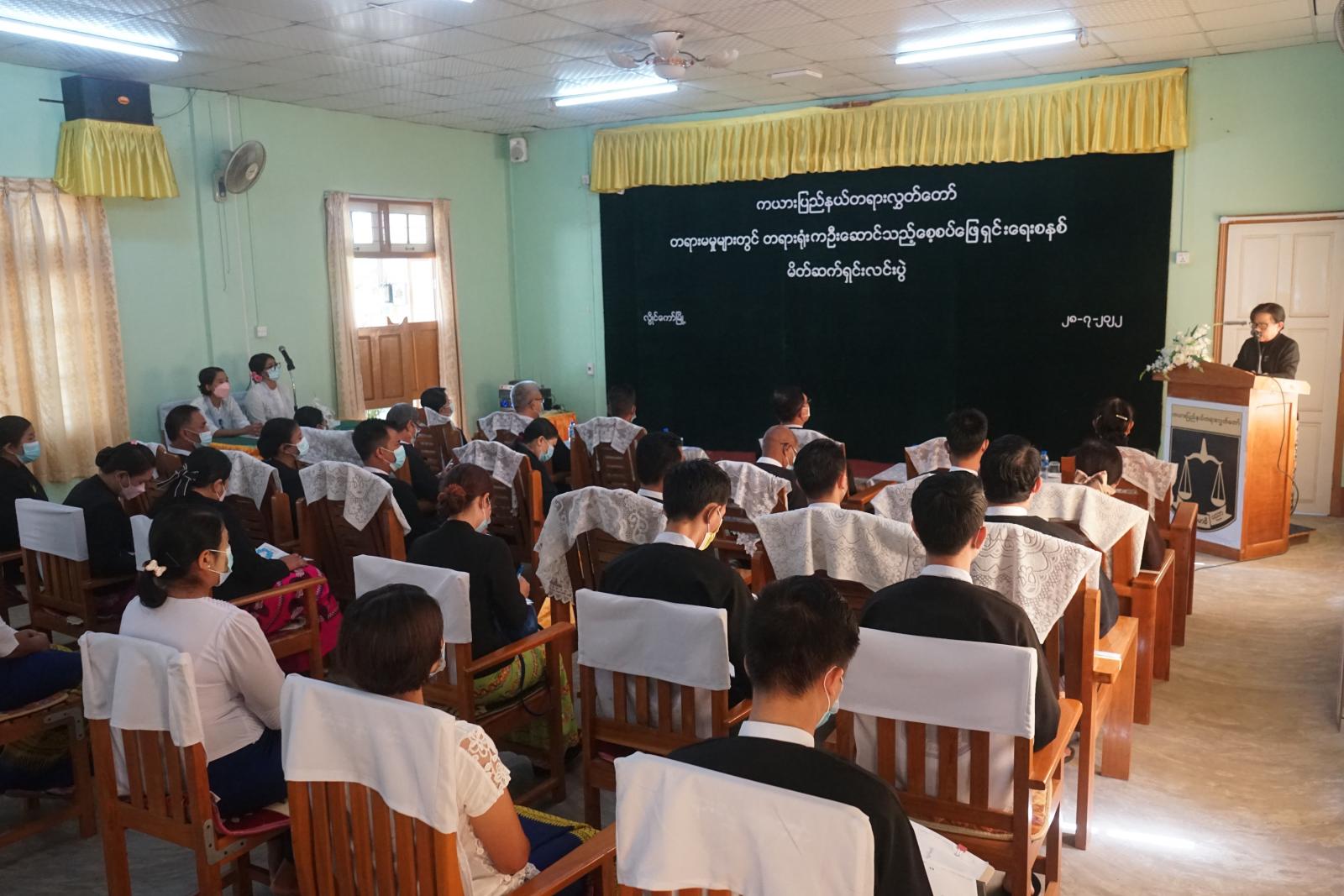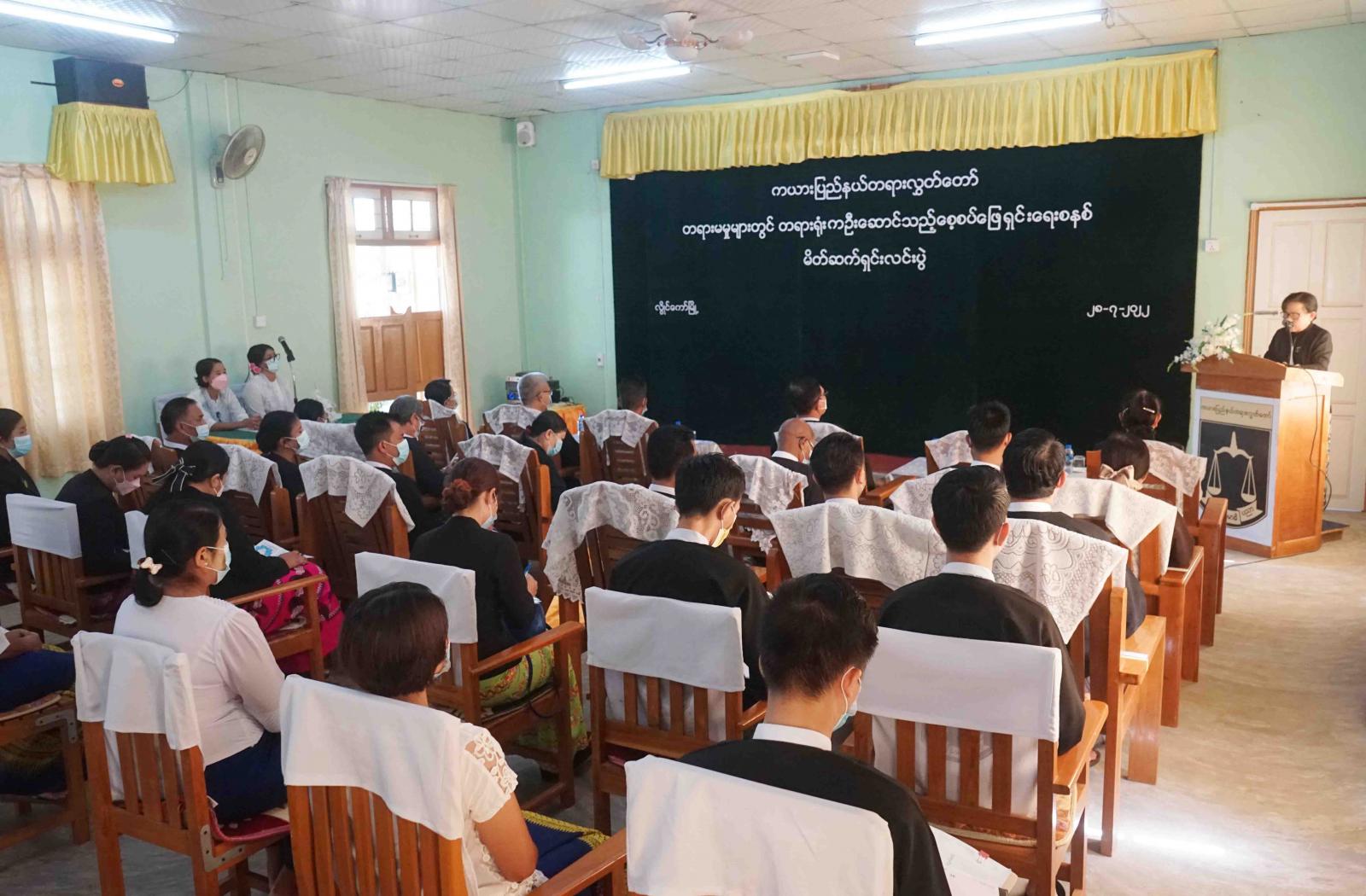 ရှေးဦးစွာ ကယားပြည်နယ်တရားလွှတ်တော် တရားသူကြီးချုပ် ဒေါ်သန်းသန်းအေး က အဖွင့်အမှာစကားပြောကြားပြီး ကယားပြည်နယ် တရားလွှတ်တော် စေ့စပ်ဖြေရှင်းရေးအရာရှိ ဦးဇင်လင်းသန့် က တရားရုံးက ဦးဆောင်သည့် စေ့စပ်ဖြေရှင်းရေးနှင့် စပ်လျဉ်း၍ ရှင်းလင်းပြောကြားခဲ့သည်။