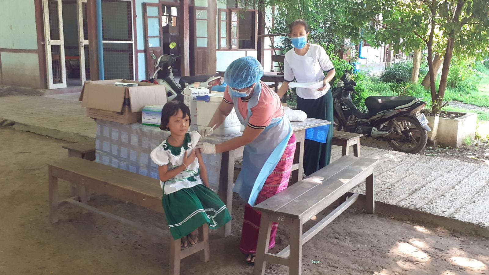 အဆိုပါ ကိုဗစ်-၁၉ ကာကွယ်ဆေးထိုးနှံပေးရာတွင် မြို့နယ်ကျန်းမာရေးဦးစီးဌာနမှ မြို့နယ်သူနာပြု(၁) ဒေါ်သက်သက်ထွေးနှင့် ဝန်ထမ်းများက ကျောင်းသား၊ ကျောင်းသူများကို ကျန်းမာရေးဝန်ကြီးဌာနမှ ထုတ်ပြန်ထားသည့် စည်းကမ်းချက်များနှင့် အညီဆေးမထိုးနှံပေးမီ ကိုယ်အပူချိန်တိုင်းတာပေးခြင်း၊ ဆေးထိုးပြီးသူများ မိနစ်(၃၀)ခန့် နားနေစောင့်ကြည့်ခြင်းများ ဆောင်ရွက်ပေးလျက်ရှိကြောင်း သိရသည်။