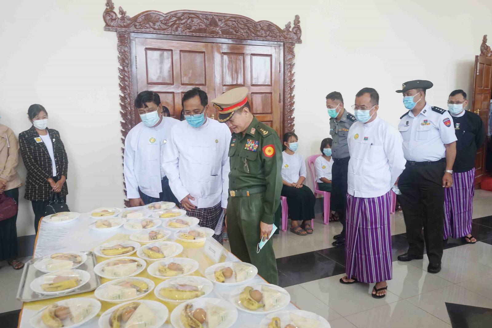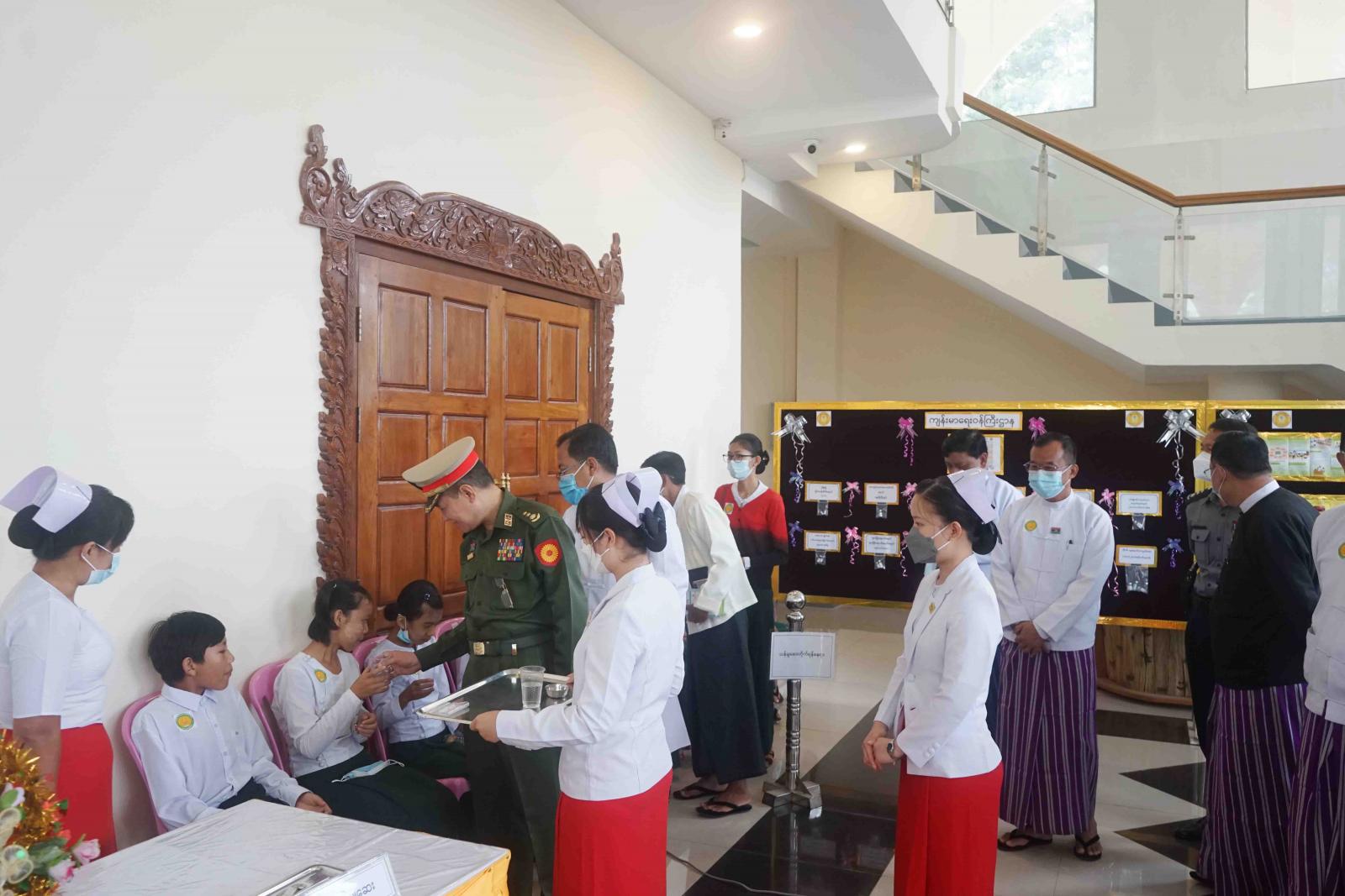 ယင်းနောက် ပြည်နယ်လုံခြုံရေးနှင့်နယ်စပ်ရေးရာဝန်ကြီးနှင့် တာဝန်ရှိသူများက အသိပညာပေး ပြခန်းများအား လှည့်လည်ကြည့်ရှုပြီး ကျောင်းသား၊ ကျောင်းသူများအား သန်ချဆေးတိုက်ကျွေးခြင်း၊ အပျိုဖော်ဝင် ကျောင်းသူများအား သံဓာတ်အားဖြည့် ဆေးပြားများပေးဝေခြင်း၊ သူငယ်တန်း ကျောင်းသား၊ ကျောင်းသူများအား မုန့်၊ ကြက်ဥနှင့် အာဟာရပေးဝေခြင်းများ ဆောင်ရွက်ခဲ့ကြကြောင်း သိရသည်။
