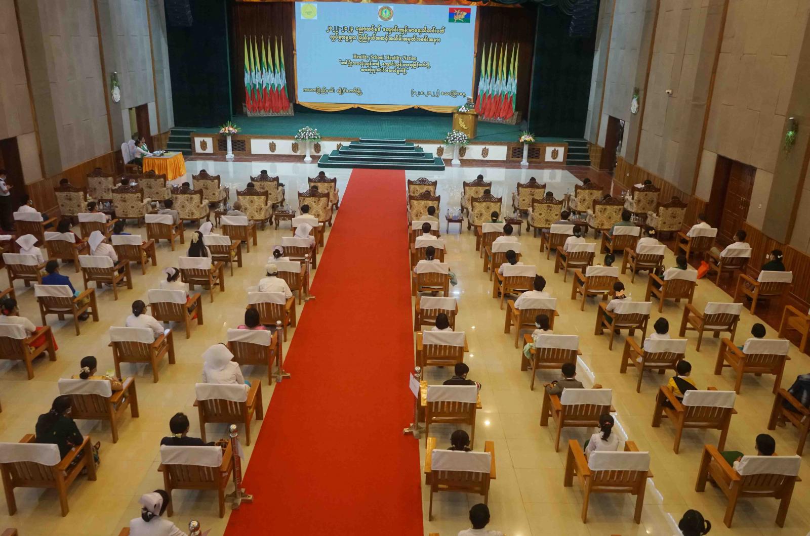 ရှေးဦးစွာ ပြည်နယ်လုံခြုံရေးနှင့်နယ်စပ်ရေးရာဝန်ကြီး ဗိုလ်မှူးကြီးမြင့်ဝေက အဖွင့်အမှာစကား ပြောကြားရာတွင် ကျောင်းသားလူငယ်များ၏ ကျန်းမာရေးအဆင့်အတန်း မြင့်မားရေးသည် အလွန်အရေးပါသည့် ကဏ္ဍတစ်ရပ်ဖြစ်ပါကြောင်း၊ ကျန်းမာရေးဝန်ကြီးဌာနအနေဖြင့် ပညာရေးဝန်ကြီးဌာနှင့် ပူးပေါင်းပြီး ကျောင်းသားလူငယ်များအတွက် ကျန်းမာရေးကို ပြုစုပျိုးထောင် စောင့်ရှောက်လျက်ရှိပါကြောင်း၊ ကျောင်းကျန်းမာရေးလုပ်ငန်းသည် ကြိုတင်ကာကွယ်ခြင်းနှင့် ကျန်းမာမှုအဆင့်မြှင့်တင်ခြင်းအတွက် အခြေခံကျသည့် ကျန်းမာရေးစောင့်ရှောက်မှု လုပ်ငန်းဖြစ်ပါကြောင်း၊ ပြည်နယ်အတွင်းရှိ အခြေခံပညာ ကျောင်းသား၊ကျောင်းသူများကို အသက်အရွယ်အလိုက် ကိုဗစ်-၁၉ ရောဂါကာကွယ်ဆေး ထိုးနှံပေးလျက်ရှိပါကြောင်း၊ ကျန်းမာရေးအဆင့်မြှင့် ကျောင်းလုပ်ငန်းစဉ်နှင့် ပတ်သက်၍ ဗဟိုနှင့် ဒေသဆိုင်ရာအစိုးရအဖွဲ့များ၊ ဌာနဆိုင်ရာများ၏ ပူးပေါင်းပံ့ပိုးမှု ပိုမိုအား ကောင်းလာစေရန်၊ ပြည်သူလူထုတစ်ရပ်လုံးတွင် ကျန်းမာရေးအဆင့်မြှင့် ကျောင်းလုပ်ငန်းစဉ်နှင့် ပတ်သက်၍ အသိပညာ ဗဟုသုတများ တိုးပွားလာစေရန်၊ ကျောင်းသား၊ ကျောင်းသူများတွင် ကျန်းမာရေးနှင့် ညီညွတ်သော အလေ့အကျင့်ကောင်းများ ကျင့်သုံးနိုင်စေရေးနှင့် သန့်ရှင်း၍ ကျန်းမာရေးနှင့်ညီညွတ်သော ကျောင်းပတ်ဝန်းကျင်များ ပေါ်ထွန်းလာစေရေး၊ ရေရှည်တည်တံ့ စေရေးအတွက် အထောက်အကူရစေရန် ရည်ရွယ်ပြီး ကျင်းပရခြင်းဖြစ်ကြောင်း ပြောကြားခဲ့သည်။