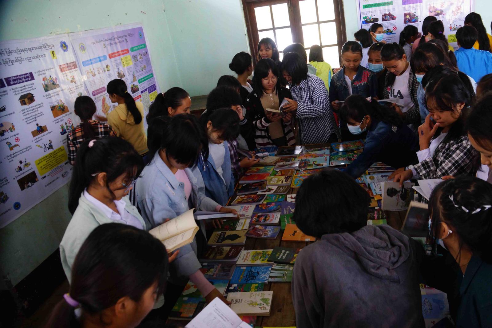 လွိုင်ကော်ခရိုင် ပြန်ကြားရေးနှင့်ပြည်သူ့ဆက်ဆံရေးဦးစီးဌာနမှ ကျောင်းသားလူငယ်များ စာအုပ်စာပေနှင့် ရင်းနှီးကျွမ်းဝင်မှုရှိပြီး စာပေဖတ်ရှုခြင်းအားဖြင့် အထွေထွေဗဟုသုတ တိုးပွားလာစေရန် ရည်ရွယ်၍ လွိုင်ကော်မြို့ အမှတ်(၂) အခြေခံပညာအထက်တန်းကျောင်း၌ စာဖတ်ရှိန်မြှင့်တင်ရေး ဟောပြောပွဲ၊ စာအုပ်စာစောင်ပြပွဲနှင့် နံရံကပ်စာစောင်ပြပွဲတို့ကို ယနေ့နံနက် ၁၀ နာရီအချိန် က အဆိုပါခန်းမ၌ ပြုလုပ်ဆောင်ရွက်ခဲ့သည်။