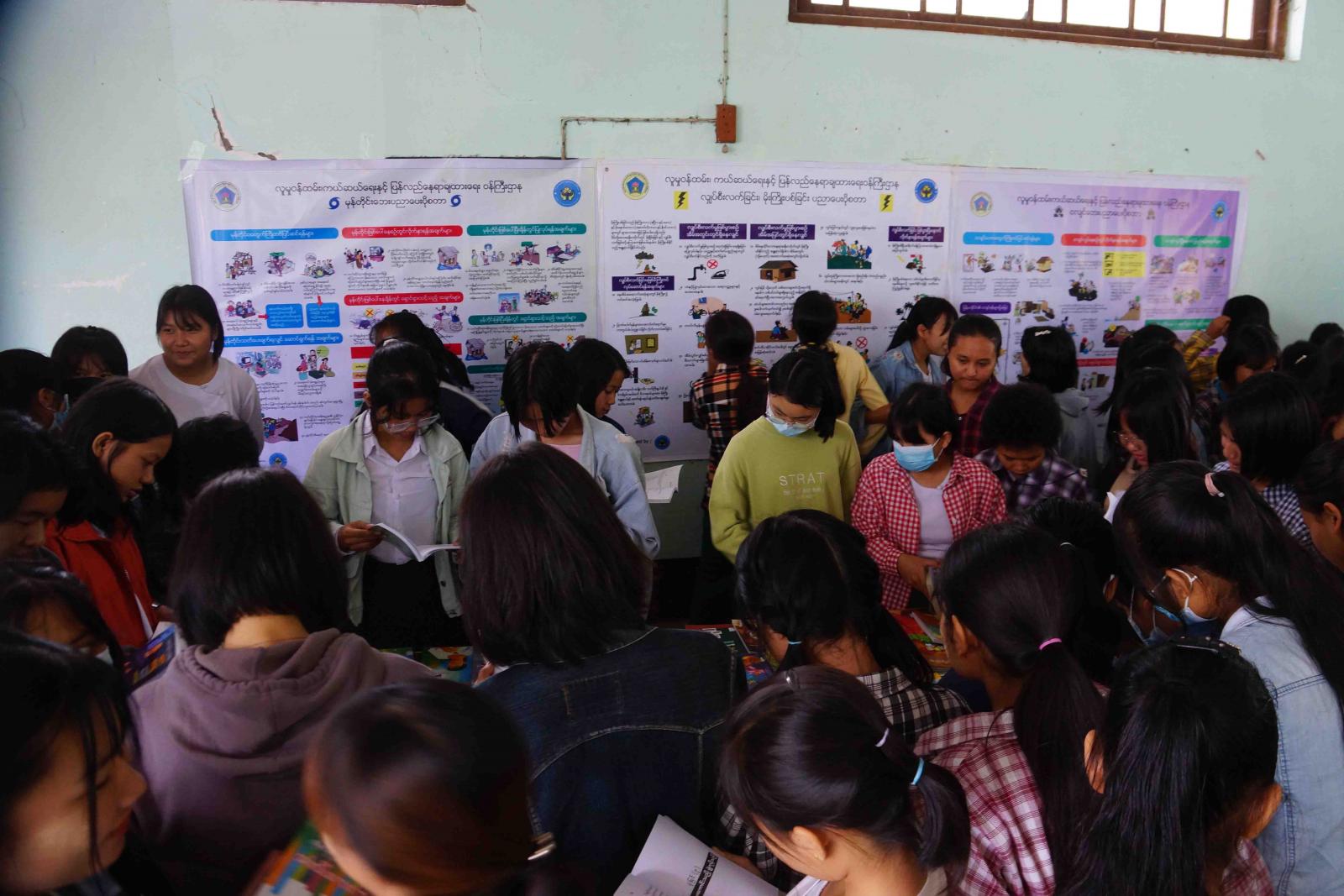 ဆက်လက်၍ ဟောပြောပွဲအပြီးတွင် ပြန်ကြားရေးနှင့်ပြည်သူဆက်ဆံရေးဦးစီးဌာန လွိုင်ကော်ခရိုင်ရုံးမှ ခင်းကျင်းပြသထားသည့် စာအုပ်စာစောင်များနှင့် သဘာဝဘေးအန္တရာယ် ဆိုင်ရာအသိပညာပေး နံရံကပ်ပြဘုတ်များအား ကြည့်ရှုလေ့လာခဲ့ကြကြောင်း သိရသည်။
