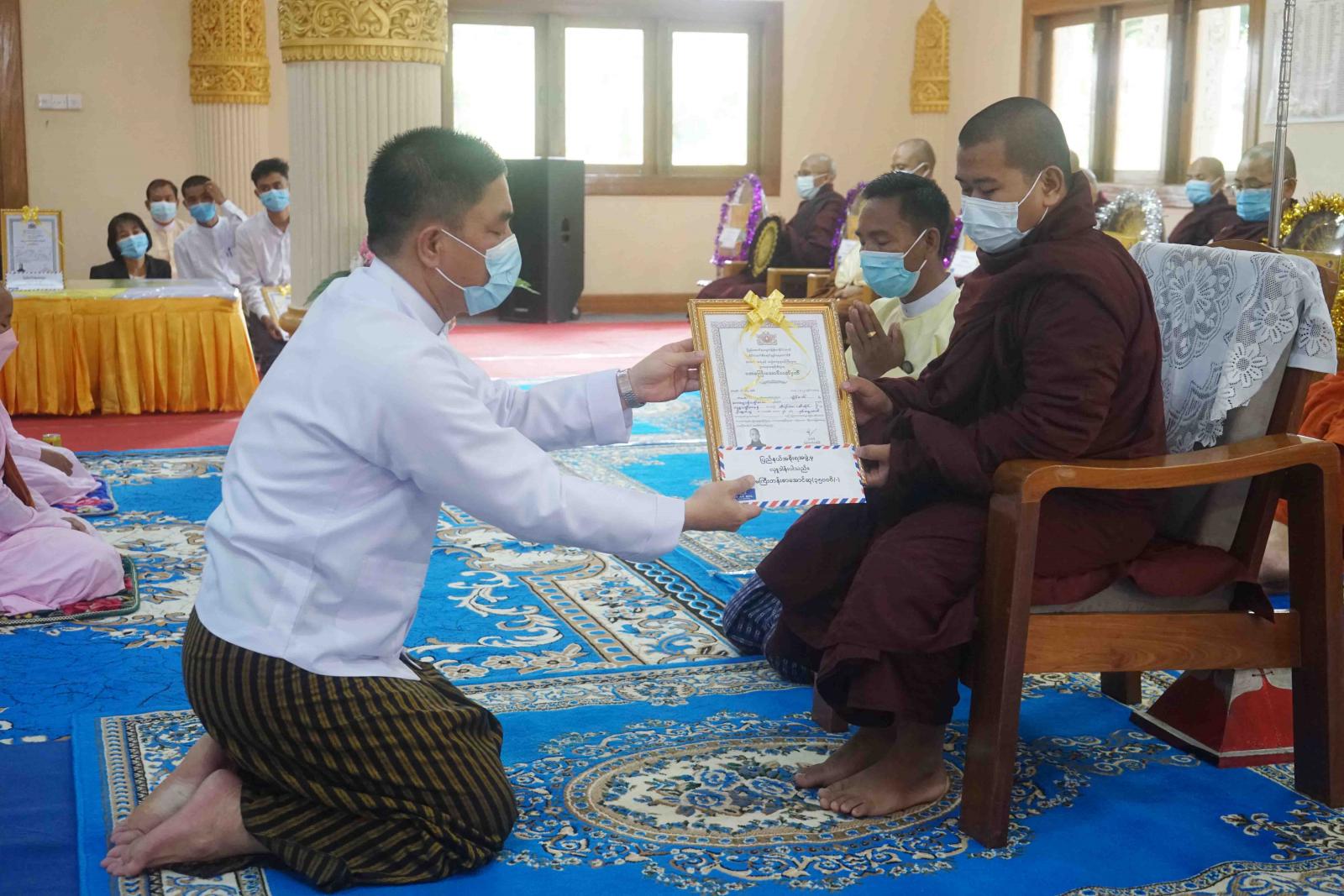 ဆက်လက်ပြီး ပြည်နယ်ဝန်ကြီးချုပ်နှင့် တာဝန်ရှိသူများက ၂၀၂၁ခုနှစ်နှင့် ၂၀၂၂ ခုနှစ်တွင် ပရိယတ္တိ စာအောင် သံဃာတော်နှင့် သီလရှင်များအား လှူဖွယ်ဝတ္ထုပစ္စည်းများနှင့် စာအောင်ဆု အလှူတော်များကို ဆက်ကပ်လှူဒါန်းပြီး အဘိဓမ္မာဂုဏ်ထူးဆောင် အောင်မြင်သည့်လူပုဂ္ဂိုလ်အား စာအောင်ဆုကို ချီးမြှင့်ပေးအပ်ခဲ့သည်။