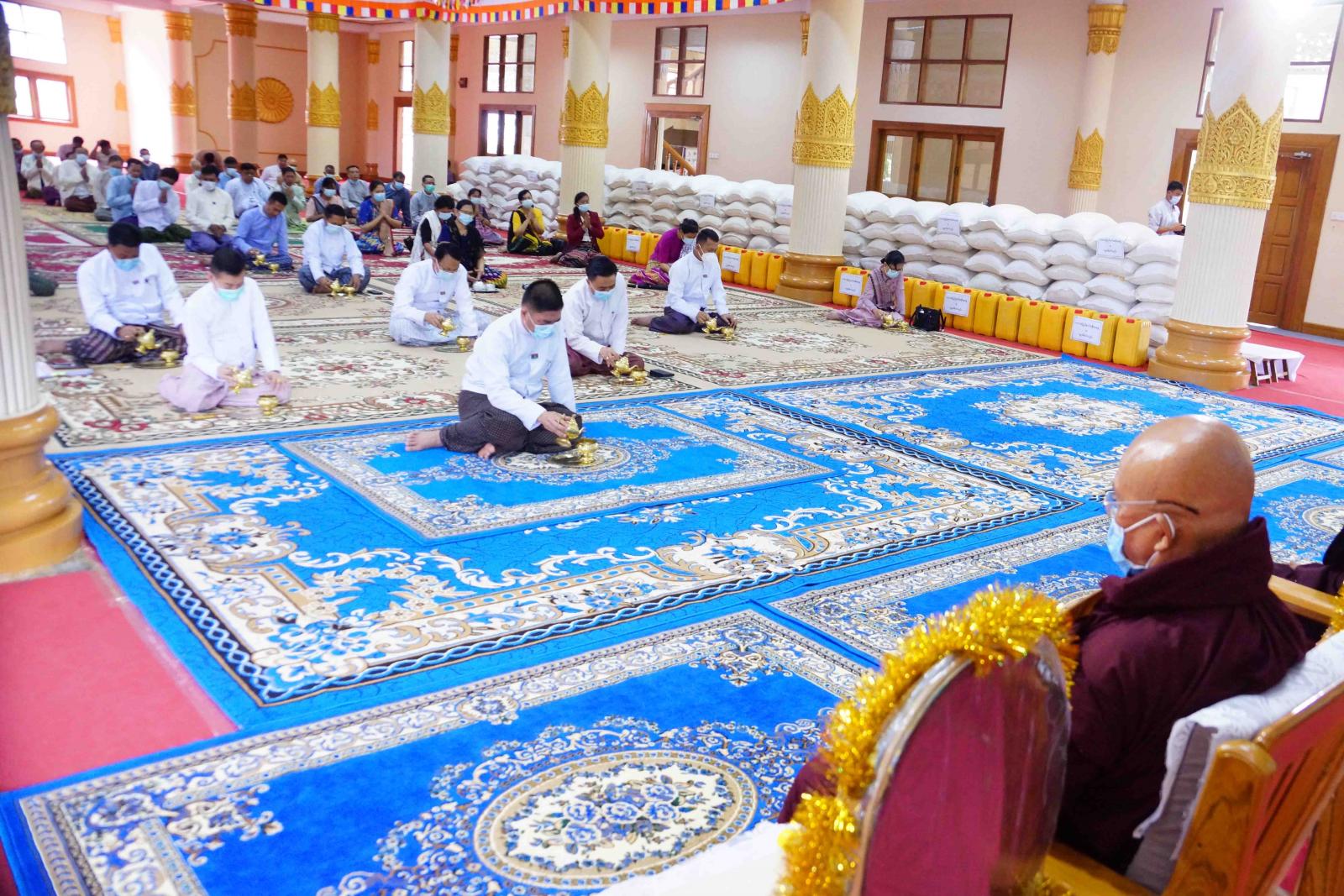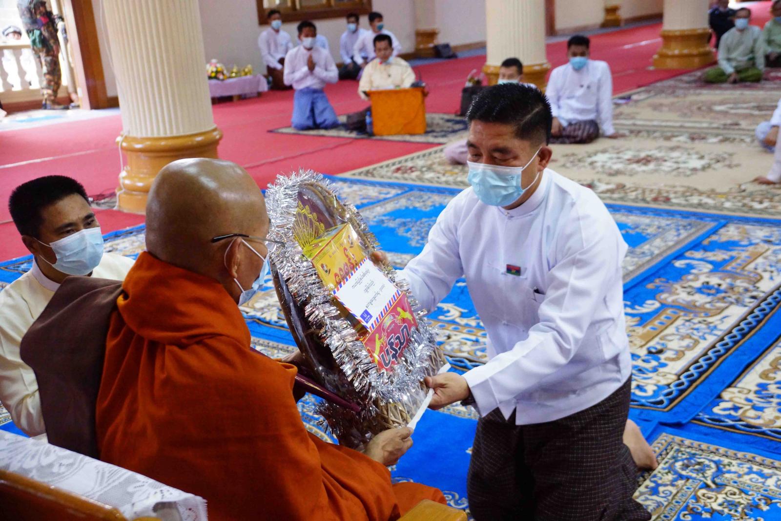 ဆက်လက်ပြီး ပြည်နယ်ဝန်ကြီးချုပ်နှင့် တာဝန်ရှိသူများက ဆရာတော်သံဃာတော် အရှင်သူမြတ်များ နှင့် သီလရှင်ဆရာကြီးများအား ဆွမ်းဆန်တော်၊ ဆီနှင့် လှူဖွယ်ဝတ္ထုပစ္စည်းများ ဆက်ကပ်လှူဒါန်းခဲ့ကြသည်။