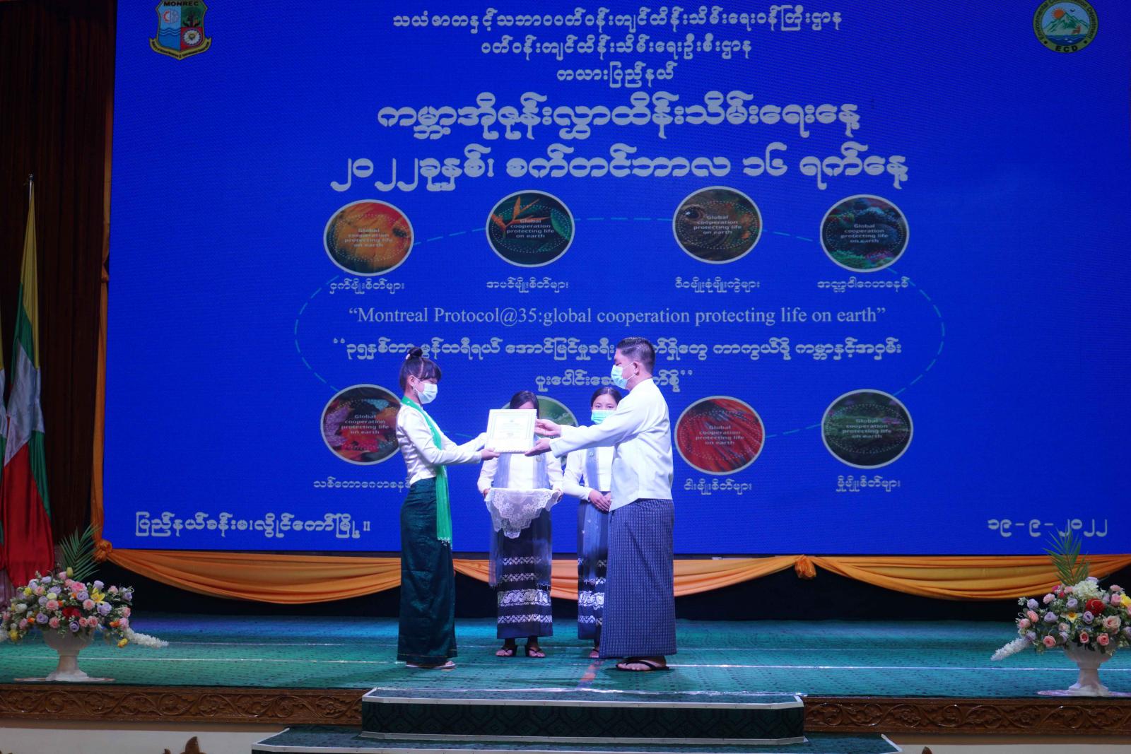 ထို့နောက် ၂၀၂၂ ခုနှစ်၊ ကမ္ဘာ့အိုဇုန်းလွှာထိန်းသိမ်းရေးနေ့ အထိမ်းအမှတ်အနေဖြင့် ပြည်နယ်အတွင်း အခြေခံပညာအထက်တန်း၊ အလယ်တန်း(ပြည်နယ်အဆင့်) ကျင်းပပြုလုပ်သော စာစီစာကုံး ပြိုင်ပွဲများတွင် ပထမ၊ ဒုတိယ ၊ တတိယ ဆုရရှိကြသော ကျောင်းသား ၊ ကျောင်းသူများအား ပြည်နယ်ဝန်ကြီးချုပ်နှင့် တာဝန်ရှိသူများက ဆုများအသီးသီးချီးမြှင့်ပေးအပ်ခဲ့ကြပြီး ၂၀၂၂ ခုနှစ်၊ ကမ္ဘာ့အိုဇုန်းလွှာ ထိန်းသိမ်းရေးနေ့ အထိမ်းအမှတ် မှတ်တမ်းဗွီဒီယိုအားကြည့်ရှု အားပေးခဲ့ကြသည်။