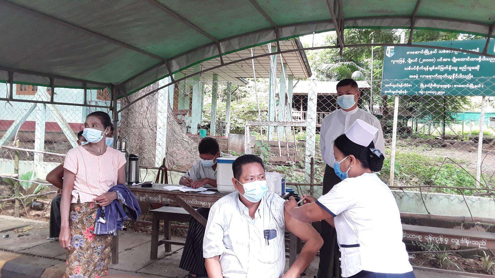 အဆိုပါ ကိုဗစ်-၁၉ ရောဂါ ကာကွယ်ဆေးထိုးနှံပေးသည့် နေရာသို့ မြို့နယ်စီမံအုပ်ချုပ်ရေးအဖွဲ့ ဥက္ကဋ္ဌ၊ မြို့နယ်ကိုဗစ်-၁၉ရောဂါ ကာကွယ်ထိန်းချုပ်ရေးနှင့် အရေးပေါ်တုံပြန်ရေးကော်မတီဥက္ကဋ္ဌ ဦးသက်မြင့်ဦးနှင့် ကော်မတီဝင်များ၊ ဌာနဆိုင်ရာ တာဝန်ရှိသူများ၊ လူမှုရေး အသင်းအဖွဲ့များက ကြည့်ရှုအားပေးခဲ့ကြောင်း သိရသည်။