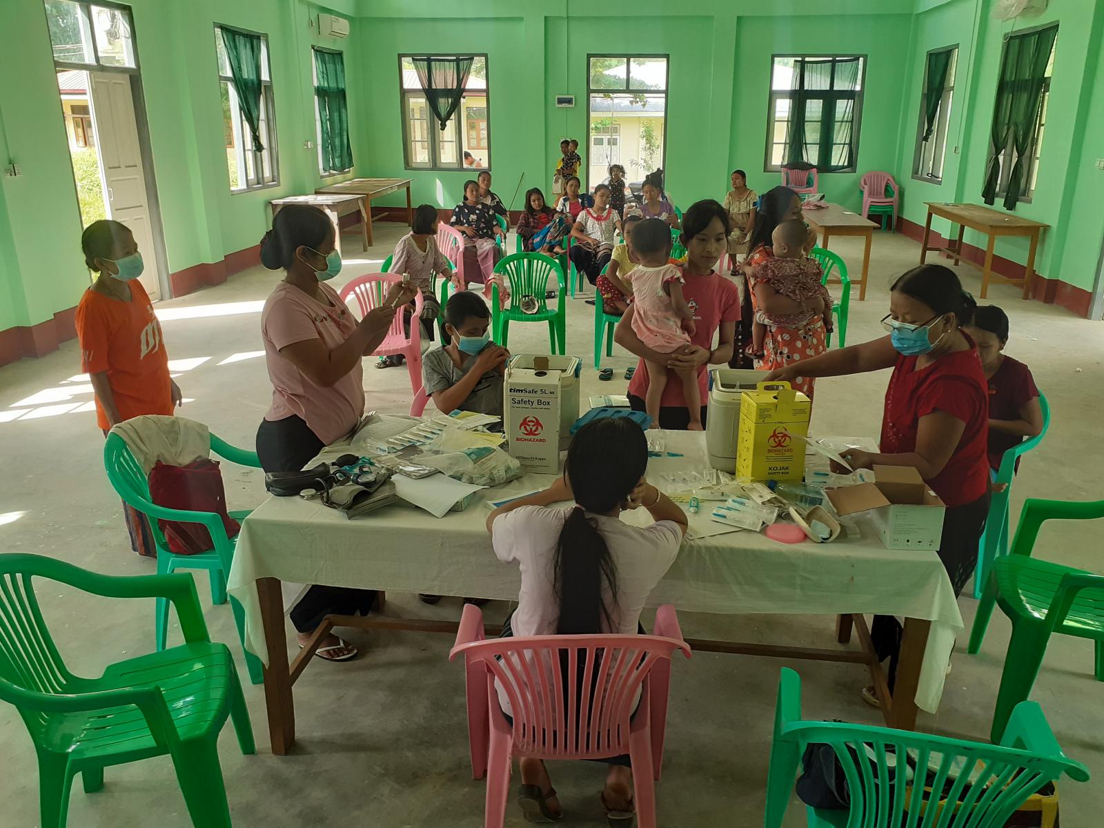 ကယားပြည်နယ်၊ ဘောလခဲခရိုင်၊ ဖားဆောင်းမြို့နယ်အတွင်းရှိ ကိုယ်ဝန်ဆောင်မိခင်များနှင့် ကလေးငယ်များ ကျန်းမာသန်စွမ်းစေရန်နှင့် ကူးစက်ရောဂါတို့မှ ကင်းဝေးစေရန်အတွက် ကိုယ်၀န်ဆောင်မိခင်များနှင့် အသက်(၁)နှစ်အောက် ကလေးငယ်များအား ပုံမှန်ကာကွယ်ဆေး ထိုးနှံ၊တိုက်ကျွေးခြင်းကို ယနေ့နံနက် (၈)နာရီအချိန် က ပြည်သူ့ဆေးရုံ၊ အစည်းအဝေးခန်းမ၌ ဆောင်ရွက်ခဲ့ကြောင်း သိရသည်။
