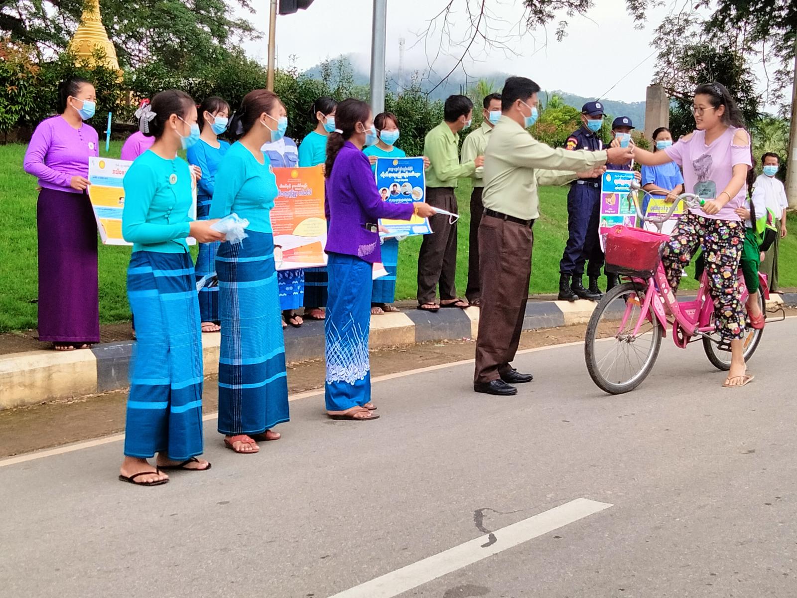 ထိုသို့ဆောင်ရွက်ရာတွင် မြို့နယ်ကိုဗစ်-၁၉ ထိန်းချုပ်ရေးနှင့်အရေးပေါ်တုံ့ပြန်ရေးကော်မတီဥက္ကဋ္ဌ ဦးဆန်းထွန်းလတ်ဦးဆောင်၍ အထွေထွေအုပ်ချုပ်ရေးဦးစီးဌာနဝန်ထမ်းများ၊ မြို့နယ်ရဲတပ်ဖွဲ့၊ မြို့နယ်မီးသတ်တပ်ဖွဲ့၊ ဌာနဆိုင်ရာများ၊ လူမှုရေးအဖွဲ့အစည်းများပူးပေါင်း၍ ဒေသခံပြည်သူများနှင့် ကျောင်းသား၊ ကျောင်းသူများအား ပါးစပ်နှင့်နှာခေါင်းစည်း Mask များအခမဲ့ ဖြန့်ဝေခြင်း ကိုဗစ်-၁၉ အသိပညာပေး လက်ကမ်းစာစောင်များဖြန့်ဝေခြင်းနှင့် အပြင်ထွက်တိုင်း ပါးစပ်နှင့်နှာခေါင်းစည်းတပ်ဆင်ရန်နှင့် ကိုဗစ်-၁၉ ကာကွယ်ဆေးများ အကြိမ်ပြည့်ထိုးနှံရေးတို့ကို အသိပေးပြောကြားခဲ့ကြောင်း သိရသည်။