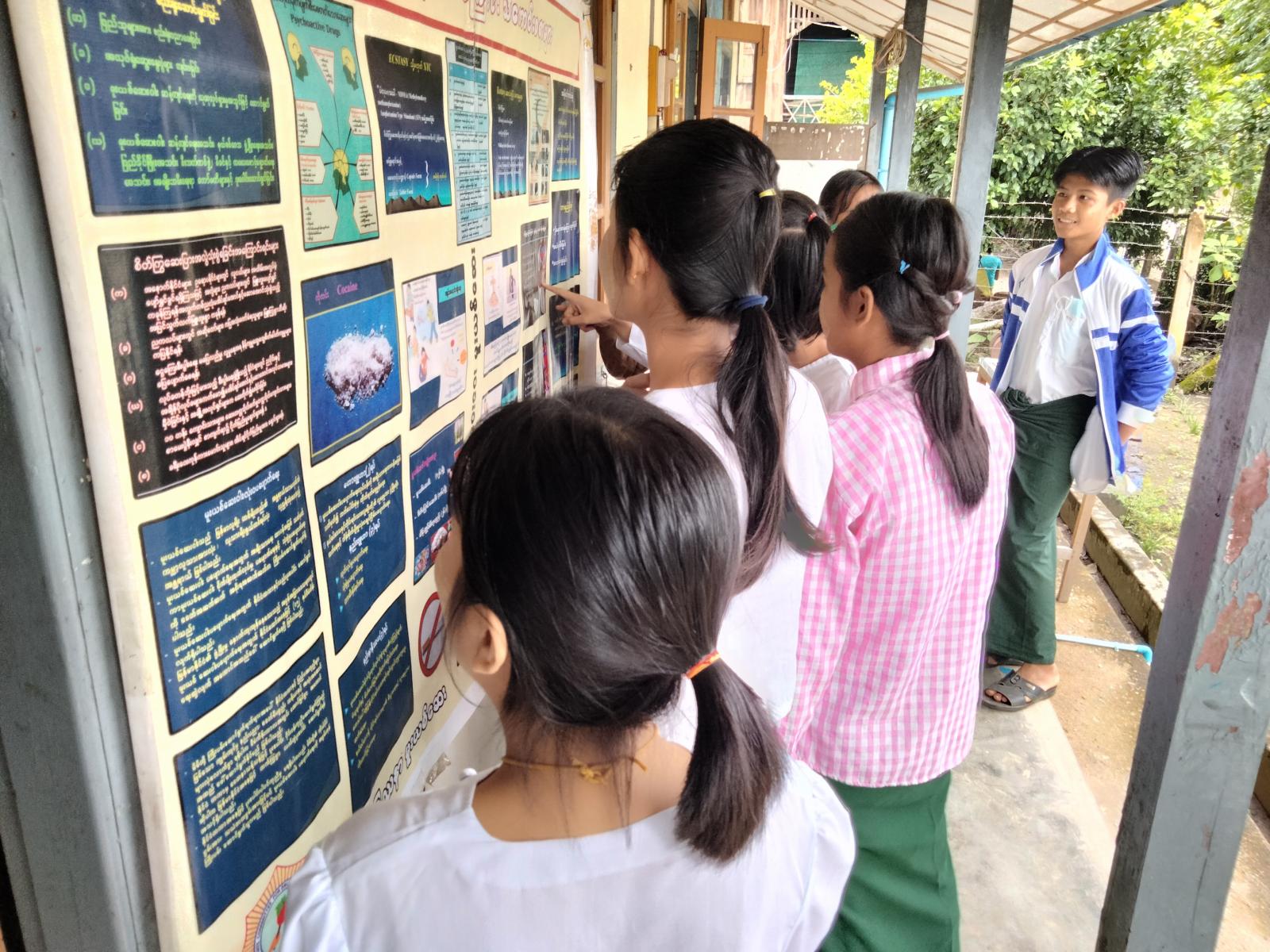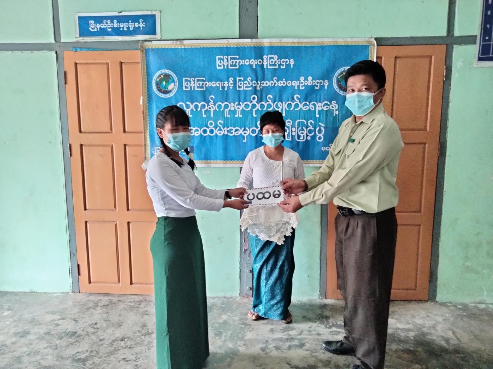 ထို့နောက် ပြန်ကြားရေးနှင့်ပြည်သူ့ဆက်ဆံရေးဦးစီးဌာန Community Centre ၌ ကျင်းပခဲ့သော အလယ်တန်းအဆင့်နှင့် အထက်တန်းအဆင့် စာစီစာကုံးပြိုင်ပွဲတွင် ဆုရရှိသော ကျောင်းသား၊ ကျောင်းသူများအား မြို့နယ်စီမံအုပ်ချုပ်ရေးအဖွဲ့ဥက္ကဌ ဦးဆန်းထွန်းလတ်၊ အတွင်းရေးမှူး မြို့နယ်ရဲတပ်ဖွဲ့မှူး ရဲမှုးသန်းဇော်ဌေးနှင့် တာဝန်ရှိသူများက ဂုဏ်ပြုဆုများ အသီးသီး ချီးမြှင့်ခဲ့ပြီး တက်ရောက်လာသည့် ကျောင်းသား၊ ကျောင်းသူများအား လူကုန်ကူးမှုအသိပညာပေး နံရံကပ်စာစောင်နှင့် စာအုပ်ပြပွဲကို ပြသခဲ့ကြောင်း သိရသည်။