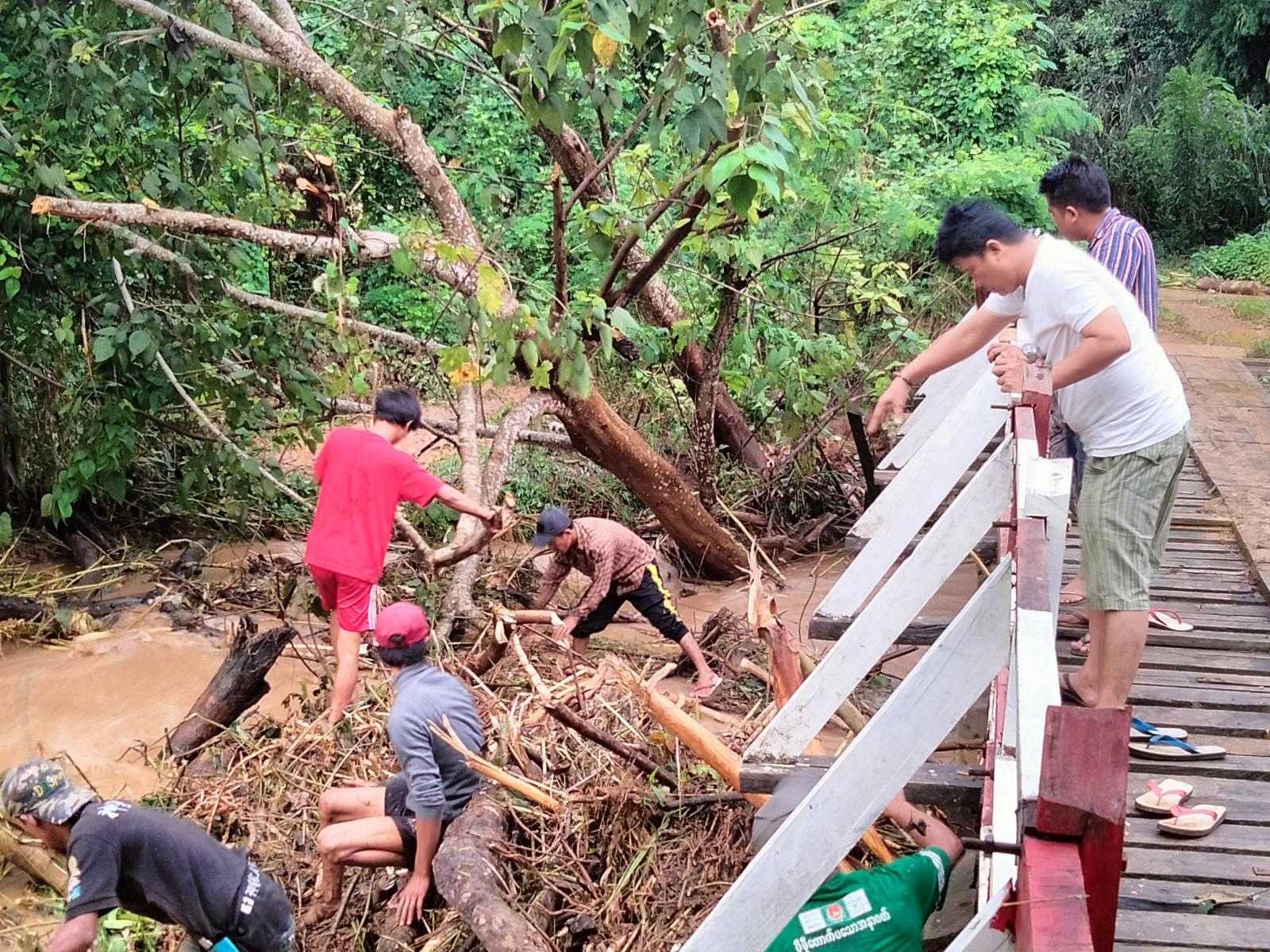 အလားတူ ယမန်နေ့ညနေက မိုးသည်းထန်စွာရွာသွန်းမှုကြောင့် မယ်စဲ့မြို့နှင့် ပန်တိန်းကျေးရွာ ကြားရှိ မယ်စဲ့-ဖားဆောင်း ကားလမ်းပေါ်သို့ သစ်ပင်ပြိုလဲခြင်းနှင့် မြေပြိုခြင်းတို့ကြောင့် ကားလမ်းပိတ်ဆို့မှု ဖြစ်ပွားနေရာ မြို့နယ်မီးသတ်တပ်ဖွဲ့ ဦးစီးအရာရှိ ဦးဖြိုးမြတ်သူနှင့် မီးသတ်တပ်ဖွဲ့ဝင်များ၊ မြို့မိမြို့ဖ ဦးတင်ဇော်တို့က ကားလမ်းပေါ်ရှိ သစ်ပင်သစ်ကိုင်းများ ခုတ်ထွင်ရှင်းလင်းခြင်း၊ မြေကြီးများအား ဖယ်ရှားရှင်းလင်းခြင်းတို့ကို ဆောင်ရွက်ခဲ့သည်။