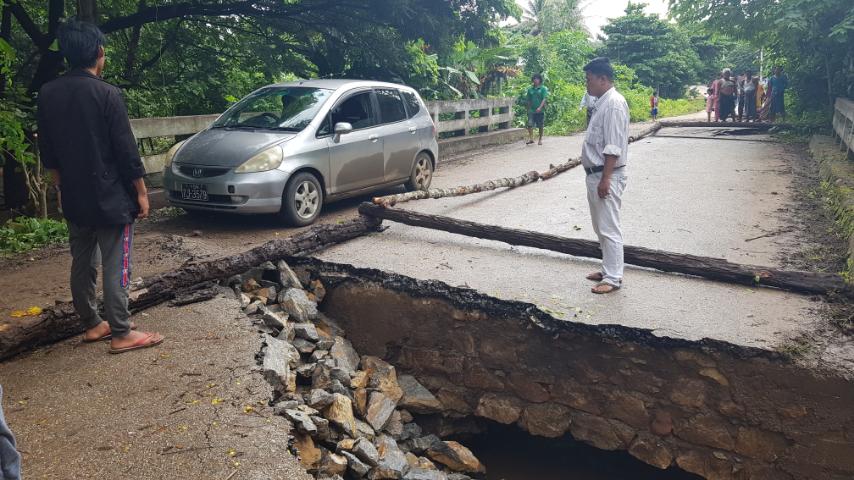 အဆိုပါ ရေတိုက်စားမှုကြောင့် ပျက်စီးသွားသော ကွန်ကရစ်တံတားနှင့် ချဉ်းကပ်လမ်းအား မြို့နယ်လမ်းဦးစီးဌာနက တံတားအခြေတိုင်များအား တုတ်ရိုက်၍ ကျောက်ခြင်းများ ပြုလုပ် ကာရံခြင်းနှင့် လမ်းပန်းဆက်သွယ်ရေး ပြတ်တောက်မှုမရှိစေရေးအတွက် ယာဉ်ငယ်များ သွာလာနိုင်ရေး စီစဉ်ဆောင်ရွက်ခဲ့ရာ ယခုအခါယာဉ်ငယ်များ ဖြတ်သန်းသွာလာနိုင်ပြီ ဖြစ်ကြောင်းနှင့် ယာဉ်ကြီးများသွာလာနိုင်ရေးအတွက် တံတားဦးစီးဌာနနှင့် လမ်းဦးစီးဌာနတို့မှ ဘေလီဘောင်ဖြင့် ယာယီတံတားထိုးပေးနိုင်ရေး ဆောင်ရွက်လျက်ရှိကြောင်း မြို့နယ်စီမံ အုပ်ချုပ်ရေးအဖွဲ့ထံမှ သိရသည်။