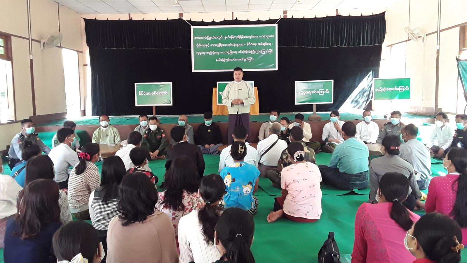 ထို့နောက် မြို့နယ်စီမံအုပ်ချုပ်ရေးအဖွဲ့ဥက္ကဋ္ဌနှင့် အဖွဲ့ဝင်များ၊ ဌာနဆိုင်ရာများက တောင်ပေါ်ကျေးရွာရှိ ခန်းမဆောင်၌ ဒေသခံပြည်သူများနှင့် တွေ့ဆုံခဲ့ရာ မြို့နယ်စီမံအုပ်ချုပ်ရေးအဖွဲ့ဥက္ကဋ္ဌမှ ဒေသခံပြည်သူများအတွက် ရပ်ရွာအေးချမ်းသာယာရေး၊ တရားဥပဒေစိုးမိုးရေး၊ လုံခြုံရေး၊ ပညာရေး၊ ကျန်းမာရေး၊ စီးပွားရေး၊ လူမှုရေး၊ မွေးမြူရေး၊ လယ်ယာစိုက်ပျိုးလုပ်ငန်း ဖွံ့ဖြိုးတိုးတက်ရေး၊ ကိုဗစ်-၁၉ ကာကွယ်ဆေး အကြိမ်ပြည့်ထိုးနှံရေး၊ လမ်းပန်းဆက်သွယ်ရေးကောင်းမွန်စေရေးနှင့် ပတ်သက်၍ ယခုလိုလာရောက် တွေ့ဆုံကွင်းဆင်း၍ ဆောင်ရွက်ပေးရခြင်းဖြစ်ကြောင်း ပြောကြားခဲ့ပြီး၊ အဖွဲ့ဝင် ဗိုလ်မှူး စင်အောင်သူငြိမ်းမှ ဒေသခံပြည်သူများ စည်းလုံးညီညွှတ်မှုရှိမှ မိမိရပ်ရွာအေးချမ်းသာယာ ဖွံ့ဖြိုးတိုးတက်မည်ဖြစ်ကြောင်း၊ သက်ဆိုင်ရာစစ်ကြောင်းကြီး (၅)ကြောင်းမှ ဌာနဆိုင်ရာ အသီးသီးကလည်း မိမိတို့ဌာနများအနေဖြင့် ဒေသဖွံ့ဖြိုးလုပ်ငန်းဆိုင်ရာများအား ကဏ္ဍအလိုက် ဆောင်ရွက်ပေးနေမှုများကို လည်းကောင်း ရှင်းလင်းပြောကြားခဲ့ကြောင်းနှင့် မြေပြင်ကွင်းဆင်းဆောင်ရွက်ခြင်းများကိုလည်း ဆောင်ရွက်ပေးခဲ့ကြောင်း သိရသည်။