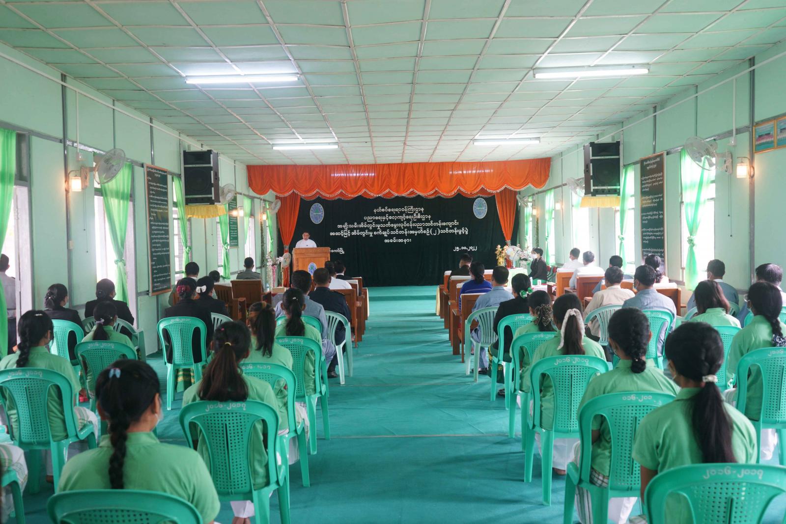 နယ်စပ်ရေးရာဝန်ကြီးဌာန၊ ပညာရေးနှင့်လေ့ကျင့်ရေးဦးစီးဌာန၊ လွိုင်ကော်မြို့၊ အမျိုးသမီးအိမ်တွင်းမှုလုပ်ငန်း ပညာသင်တန်းကျောင်းခန်းမ၌ ယနေ့ နံနက်ပိုင်းက ကယားပြည်နယ် အဆင့်မြင့်အိမ်တွင်းမှု စက်ချုပ်သင်တန်း အမှတ်စဉ် (၂) သင်တန်းဖွင့်ပွဲ အခမ်းအနားကျင်းပပြုလုပ်ခဲ့ရာ ကယားပြည်နယ် ဝန်ကြီးချုပ် ဦးဇော်မျိုးတင်၊ ပြည်နယ်အစိုးရအဖွဲ့ဝင်များ၊ ဌာနဆိုင်ရာများနှင့် သင်တန်းသူများ တက်ရောက်ခဲ့ကြသည်။