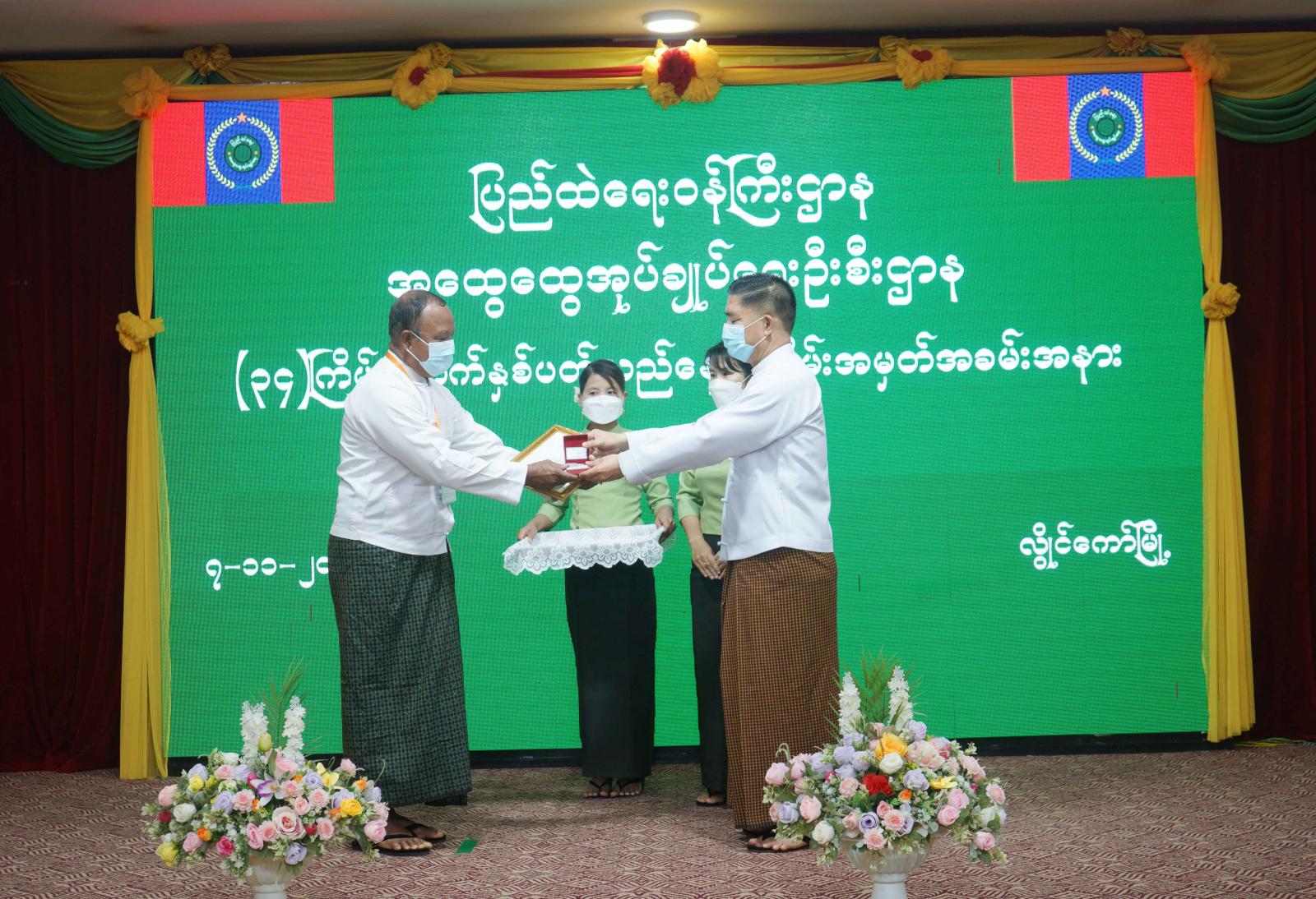 ထို့နောက် ပြည်နယ်ဝန်ကြီးချုပ်က ရဲဗလတံဆိပ်ချီးမြှင့်ခြင်းခံရသည့် လောဓမ္မရပ်ကွက် အုပ်ချုပ်ရေးမှူးဟောင်း ဦးတင်ထွန်း၊ ဖရူဆိုမြို့နယ် အုပ်ချုပ်ရေးမှူး (ငြိမ်း) ဦးအောင်မြင့်ထွန်းနှင့် စီမံခန့်ခွဲရေးဝန်ထမ်းအဆင့်(၁) ဒေါ်ချောစုမာတို့အား ဂုဏ်ပြုတံဆိပ်များနှင့် ဂုဏ်ပြုစာလွှာ များကိုလည်းကောင်း၊ နိုင်ငံ့ဝန်ထမ်းတက္ကသိုလ် (အထက်မြန်မာပြည်တွင်) ဖွင့်လှစ်ခဲ့သည့် အုပ်ချုပ်မှု စွမ်းရည်မြှင့်မားရေး သင်တန်းအမှတ်စဉ်(၃)တွင် သင်တန်းသူစံပြဆု၊ သေနတ်ပစ်ထူးချွန်ဆုများ ရရှိခဲ့သည့် စီမံခန့်ခွဲရေးဝန်ထမ်းအဆင့်(၁) ဒေါ်ဟန်ငြိမ်းစုအားလည်းကောင်း ဂုဏ်ပြုဆုများပေးအပ်ချီးမြှင့်ခဲ့ရာ ဂုဏ်ပြုတံဆိပ်နှင့် ထူးချွန်ဆုရရှိသူများက အသီးသီးလက်ခံရယူခဲ့ကြသည်။