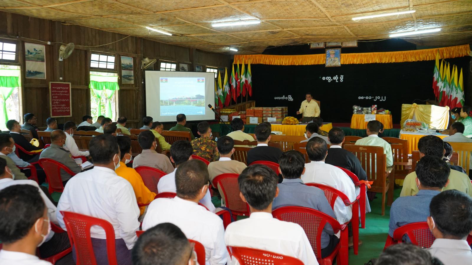 ထို့နောက် ပြည်နယ်အုပ်ချုပ်ရေးမှူးက ခရိုင်၊ မြို့နယ်အထွေထွေအုပ်ချုပ်ရေးဦးစီးဌာနရုံး ဝန်ထမ်းများအတွက် အမှတ်တရ လက်ဆောင်ပစ္စည်းများ ပေးအပ်ရာ ခရိုင်နှင့် မြို့နယ်အုပ်ချုပ်ရေးမှူးတို့က လက်ခံရယူကြသည်။
