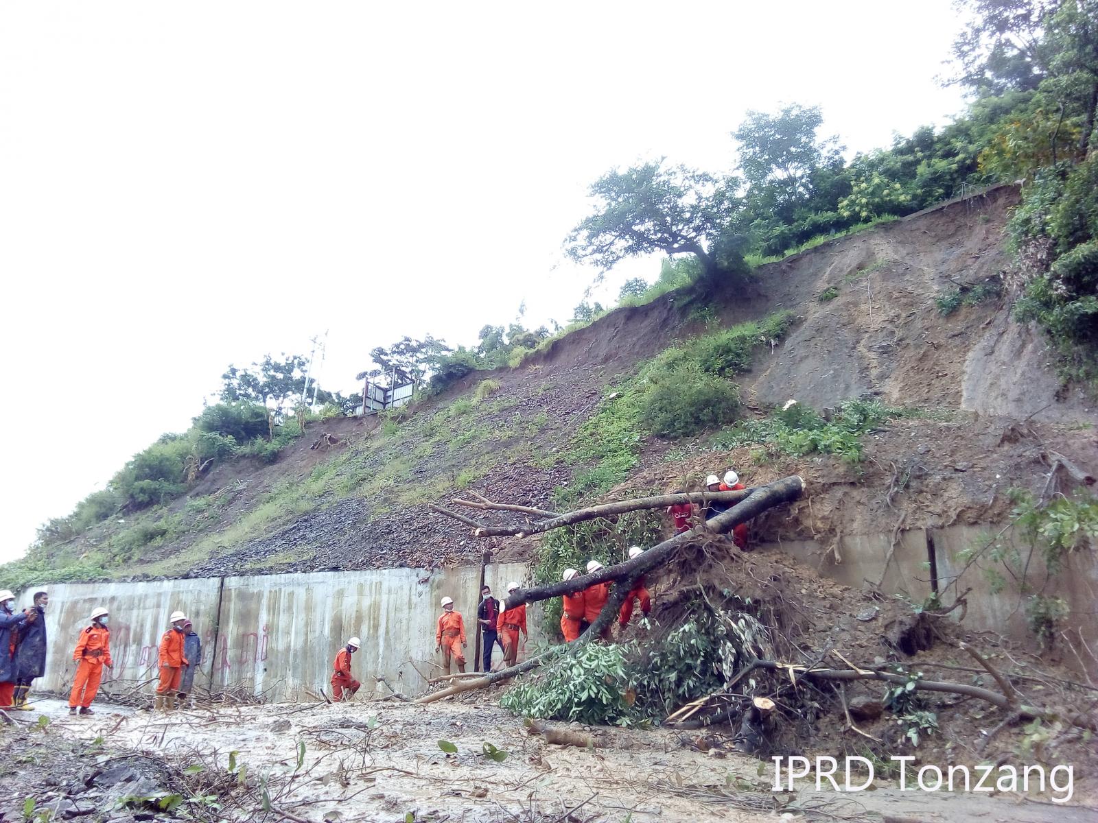 ထိုနောက် တွန်းဇံမြို့ရှောင်လမ်းနှင့် အမှတ်(၂)လမ်းကြားတွင် မိုးရွာသွင်းမှုကြောင့် မြေပြိုကျခြင်းနှင့် သစ်ပင် လဲကျခြင်းများ ဖြစ်ပေါ်လျက်ရှိပြီး လမ်းသွားလမ်းလာပြည်သူများနှင့် မော်တော်ယာဉ်များအတွက် အန္တရာယ် ရှိသောကြောင့် သစ်ပင်အားရှင်းလင်း ဖယ်ရှားခဲ့ကြောင်းနှင့် အဆိုပါလမ်းကြားတွင် ဆက်လက်လဲကျ နိုင်သည့်သစ်ပင်များအား ခုတ်ထွင်ရှင်းလင်းခြင်း လုပ်ငန်းများ ဆောင်ရွက် ခဲ့ကြကြောင်း သိရသည်။