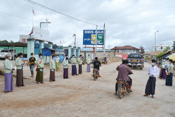ထိုသို့ Mask Campaign ဆောင်ရွက်လျှက်ရှိရာ ကိုဗစ်-၁၉ ရောဂါ ကြိုတင်ကာကွယ် တားဆီးရေး အတွက် မြို့နယ်စီမံခန့်ခွဲမှုကော်မတီ ဥက္ကဋ္ဌ မြို့နယ်အုပ်ချုပ်ရေးမှူး ဦးသက်လွင်ထွန်းနှင့် မြို့နယ်အဆင့် ဌာနဆိုင်ရာများပူးပေါင်း၍ နှာခေါင်းစည်း Mask (၃၅၀၀) ခု အား လမ်းသွားလမ်းလာသူများ၊ စျေးရာင်းချသူ များနှင့် စျေးဝယ်လာသူများကို အခမဲ့ ဖြန့်ဝေပေးကာ စျေးရောင်းချသူများအား ကျန်းမာရေးဝန်ကြီးဌာန၏ ကိုဗစ်-၁၉ ရောဂါ ကြိုတင်ကာကွယ် ထိန်းချုပ် တားဆီးရေး ညွှန်ကြားချက်များနှင့်အညီ ရောင်းချသွားရန် အသိပညာပေးသည့် Mask Campaign ကို ပြုလုပ်ခဲ့ကြောင်း သိရသည်။