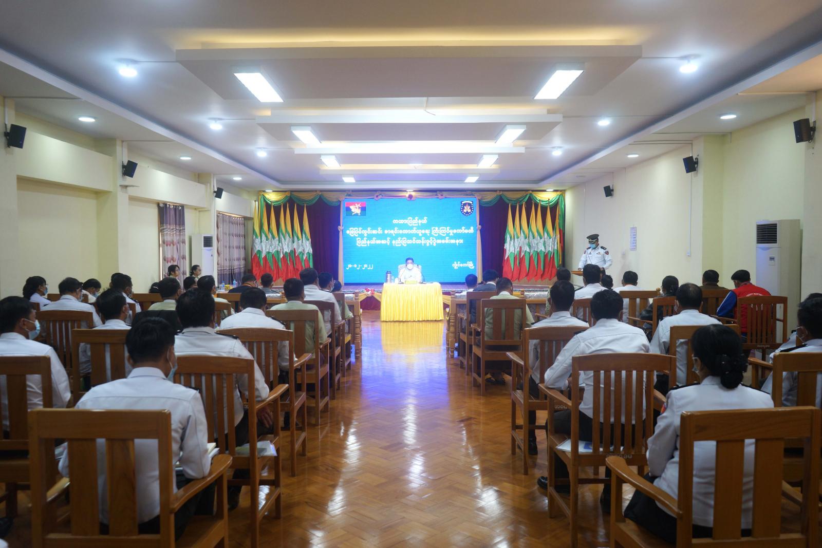 ထို့နောက် လူဝင်မှုကြီးကြပ်ရေးနှင့်ပြည်သူ့အင်အားဝန်ကြီးဌာန၊ ပြည်နယ်ဦးစီးမှူး ဦးအောင်ဝင်းဦးက မြေပြင်ကွင်းဆင်းကောက်ယူရေးဆိုင်ရာလုပ်ငန်းများနှင့်ပတ်သက်၍ ရှင်းလင်းတင်ပြခဲ့ပြီး ဗဟိုအဆင့် နည်းပြသင်တန်းတက်ရောက်ခဲ့သူ ဘောလခဲခရိုင်မှူး၊ ဒုတိယညွန်ကြားရေးမှူးဦးသက်ခိုင်က သင်တန်းဆိုင်ရာကိစ္စရပ်များနှင့်စပ်လျဉ်း၍ ရှင်းလင်းတင်ပြခဲ့ကြသည်။