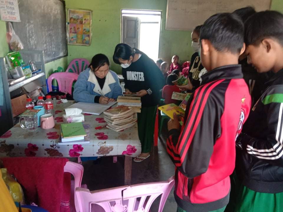 ထိုသို့ ကွင်းဆင်းရာ၌ ဟိုပန်ခရိုင်၊ ပြန်ကြားရေးနှင့်ပြည်သူ့ဆက်ဆံရေးဉီးစီးဌာနမှ ဒေါ်နန်းခင်စန်းဝေ (ရုပ်သံကျွမ်းကျင်-၃)နှင့် ဝန်ထမ်းများက အမက(မန်ကောင်း)ကျောင်းရှိ ဆရာ/ဆရာမများနှင့် ကျောင်းသား/သူ များကို ယခင်လက ငှားရမ်းပေးထားသည့် သုတ/ရသ စာအုပ်များအား ပြန်လည်အပ်နှံလက်ခံပြီး ယနေ့တွင် မဂ္ဂဇင်း(၁၅)အုပ်နှင့် ပညာရပ်(၁၅)အုပ် စုစုပေါင်း သုတ၊ ရသ စာအုပ် (၃၀)အုပ်အား အခမဲ့ ပြန်လည် ငှားရမ်းပေးခဲ့သည်။