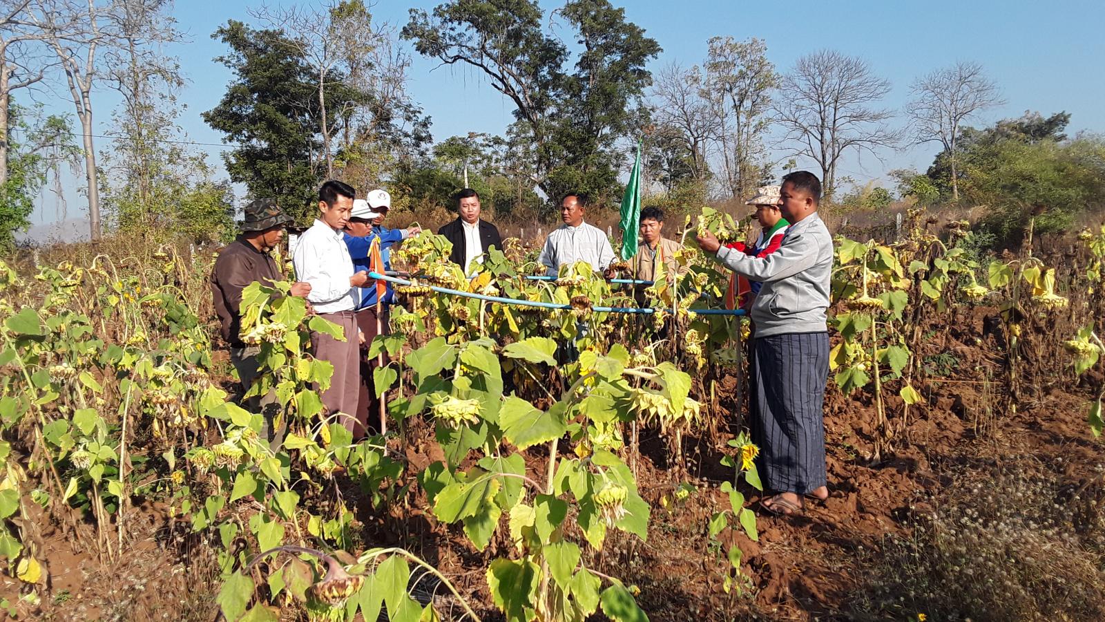ကွင်းဆင်းဆောင်ရွက်ရာတွင် စံပြစိုက်ခင်းများ စတင်စိုက်ပျိုးထားရှိမှုနှင့် အောင်မြင်ဖြစ်ထွန်းနေမှုအခြေအနေများကို မြို့နယ်စိုက်ပျိုးရေးဦးစီးဌာန၊ မြို့နယ်ဦးစီးမှူး ဦးဇော်မင်းထွန်းက ရှင်းလင်းတင်ပြခဲ့ရာ မြို့နယ်စီမံအုပ်ချုပ်ရေးအဖွဲ့ ဥက္ကဋ္ဌ မြို့နယ်အုပ်ချုပ်ရေးမှူး ဦးသက်မြင့်ဦးက ဒေသတွင်းစားသုံးဆီ ဖူလုံမှုစေရေးအတွက် ဆီထွက်သီးနှံဆောင်းနေကြာ (ရေဆင်း-၁)နှင့် ဆောင်းနေကြာကို ပိုမိုစိုက်ပျိုးနိုင်ရေးပညာပေးစည်းရုံးခြင်း၊ စိုက်ဧကများ တိုးချဲ့စိုက်ပျိုးနိုင်ရေးနှင့်သီးညှပ်စိုက်ပျိုးခြင်းများ စည်းရုံးဆောင်ရွက်ကြရန် မှာကြားခဲ့ကြောင်းသိရသည်။