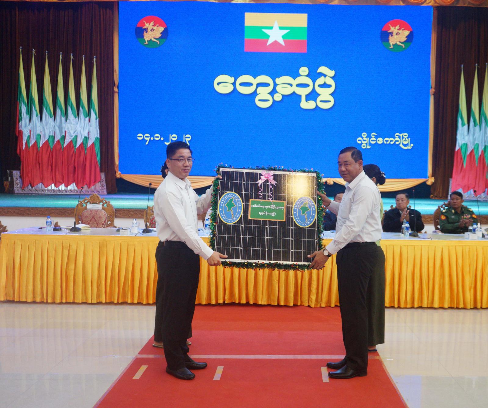 ဆက်လက်၍ နယ်စပ်ရေးရာဝန်ကြီးဌာန၊ ပြည်ထောင်စုဝန်ကြီး၊ ဒုတိယဗိုလ်ချုပ်ကြီး ထွန်းထွန်းနောင်က ဆိုလာပစ္စည်းများကိုလည်းကောင်း၊ ကျန်းမာရေးဝန်ကြီးဌာန၊ ဒုတိယဝန်ကြီးဒေါက်တာအေးထွန်းက ဆေးပစ္စည်းများကိုလည်းကောင်း ပေးအပ်လှူဒါန်းခဲ့ရာပြည်နယ်ဝန်ကြီးချုပ်ဦးဇော်မျိုးတင်နှင့် ပြည်နယ်လူမှုရေးရာဝန်ကြီးဦးအောင်ဝင်းဦး တို့ကလက်ခံရယူခဲ့သည်။