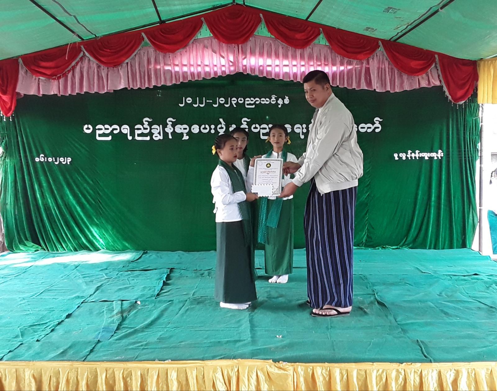 ဆက်လက်၍ ၂၀၂၁-၂၀၂၂ နှစ် ပညာသင်နှစ်တွင် (A)အဆင့်ဖြင့် ထူးချွန်စွာအောင်မြင်ခဲ့သည့် ကျောင်းသား၊ ကျောင်းသူများ၊ (၇၅)နှစ်မြောက် စိန်ရတုလွတ်လပ်ရေးနေ့ စာစီစာကုံးပြိုင်ပွဲနှင့် အားကစားပြိုင်ပွဲများတွင် ဆုရရှိသူများအား မြို့နယ်အုပ်ချုပ်ရေးမှူး ဦးသက်မြင့်ဦးနှင့် တာဝန်ရှိသူများက ဆုများကို အသီးသီးပေးအပ်ချီးမြှင့်ခဲ့သည်။