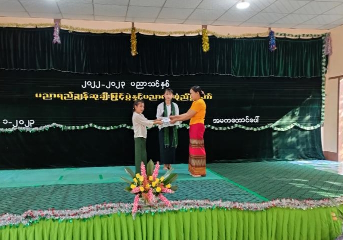 ဆက်လက်၍ ၂၀၂၁-၂၀၂၂နှစ် ပညာသင်နှစ်တွင် (A)အဆင့်ဖြင့် ထူးချွန်စွာအောင်မြင်ခဲ့သည့်ကျောင်းသား၊ ကျောင်းသူများ၊ (၇၅)နှစ်မြောက်စိန်ရတုလွတ်လပ်ရေးနေ့အားကစားပြိုင်ပွဲများတွင် ဆုရရှိသူများအား မြို့နယ်အုပ်ချုပ်ရေးမှူးဦးသက်မြင့်ဦးနှင့် တာဝန်ရှိသူများက ဆုများကိုအသီးသီးပေးအပ်ချီးမြှင့်ခဲ့သည်။