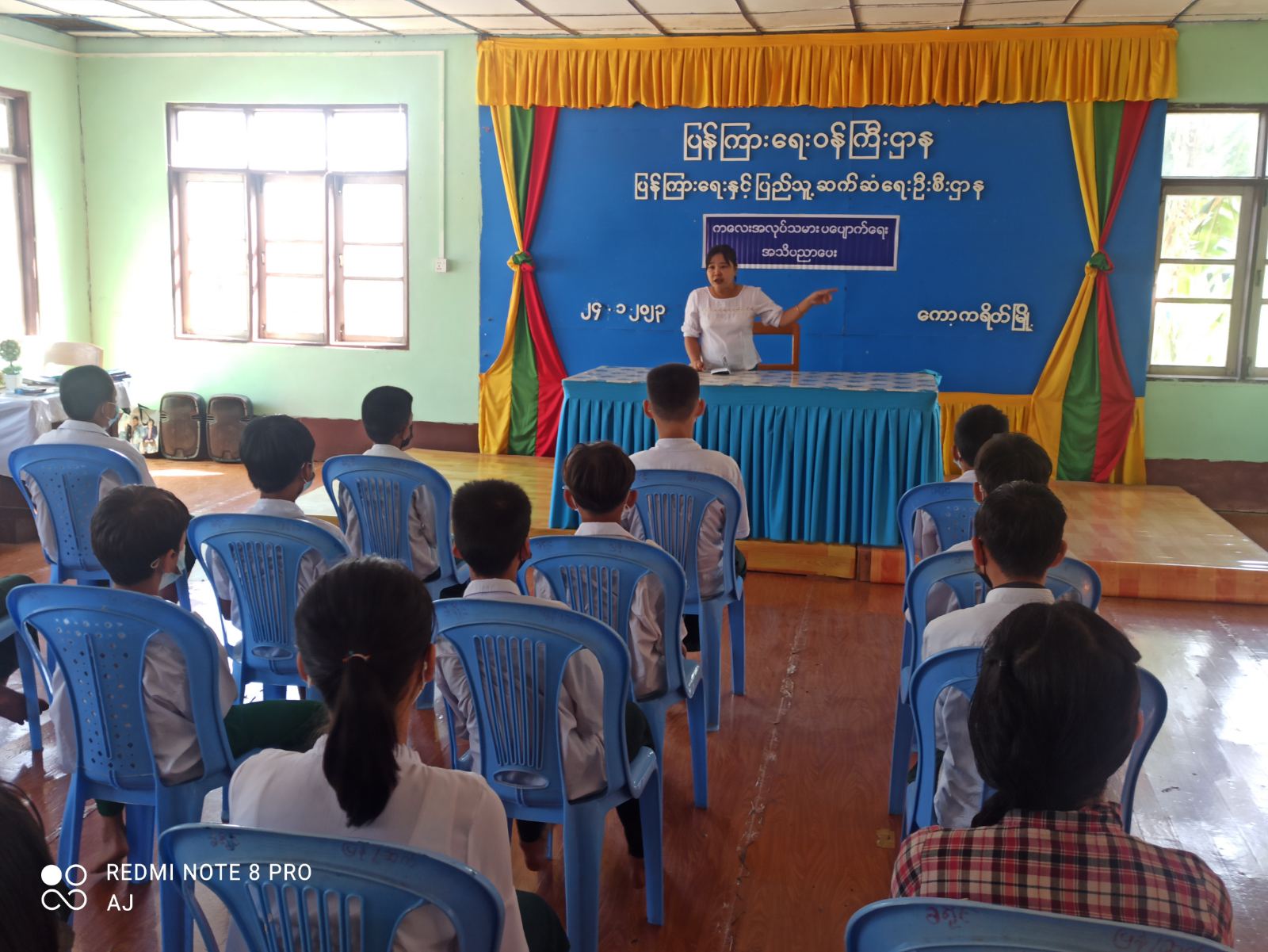 ရှေးဦးစွာ ကေ့ာကရိတ်ခရိုင် ပြန်ကြားရေးနှင့်ပြည်သူ့ဆက်ဆံရေးဦးစီးဌာနမှ ဦးစီးအရာရှိ ဒေါ်ခင်မျိုးဝင်းက ကလေးအလုပ်သမား၏ အဓိပ္ပါယ်ဖွင့်ဆိုချက်၊ ကလေးအလုပ်သမားများ၏ အသက်အရွယ်၊ ကလေးအလုပ်သမားများနှင့် ကျောင်းပညာရေး၊ ကလေးအလုပ်သမားများ၏ အလုပ်ချိန်ကန့်သတ်ချက်များ၊ ကလေးအလုပ်သမားပပျောက်ရေး ရည်မှန်းချက်(၃)ရပ် စသည့် ကလေးအလုပ်သမားနှင့် သက်ဆိုင်သည့် သိမှတ်ဖွယ်ရာ အကြောင်းအရာများကို အသိပညာပေး ဟောပြောခဲ့သည်။