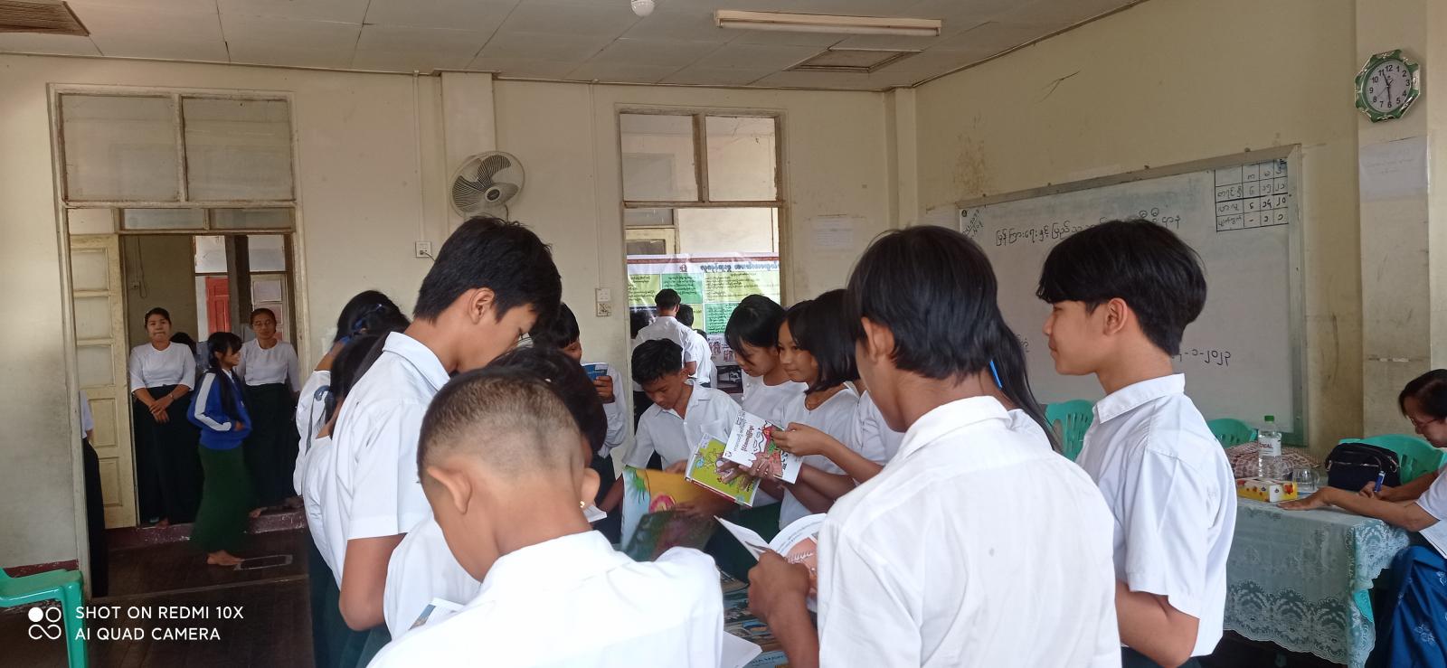 ထို့နောက် ကျောင်းသား/ကျောင်းသူများ အသိပညာဗဟုသုတ တိုးပွားစေရေးအတွက် လူကုန်ကူးမှုတိုက်ဖျက်ရေးအသိပညာပေး နံရံကပ်စာစောင်များ၊ မူးယစ်ဆေးဝါး၏အန္တရာယ်၊ ကလေးအလုပ်သမားပပျောက်ရေး အသိပညာပေးနှင့် ယာဉ်အန္တရာယ်၊ လမ်းအန္တရာယ် အသိပညာပေး နံရံကပ်စာစောင်များကို ခင်းကျင်းပြသရာ ကျောင်းသား/ကျောင်းသူများ စိတ်ပါဝင်စားစွာ ကြည့်ရှုလေ့လာကြကြောင်း သိရသည်။