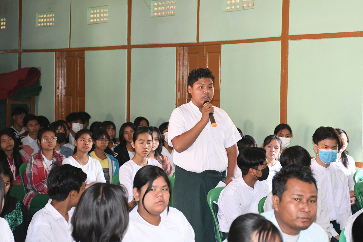 ထို့နောက် ဆွေးနွေးမှုများနှင့်ပတ်သက်၍ တက်ရောက်လာသော ကျောင်းသား၊ ကျောင်းသူများက မိမိတို့၏အမြင်များကို ပြန်လည်ဆွေးနွေးခဲ့ကြရာ ဦးဆောင်ဆွေးနွေးသူနှင့် မြန်မာနိုင်ငံသတင်းမီဒီယာကောင်စီဝင် ဒေါ်ခင်သန်းနွဲ့(မမ-လားရှိုး)တို့က ဖြည့်စွက်ဆွေးနွေးပေးခဲ့ကြောင်း သိရသည်။