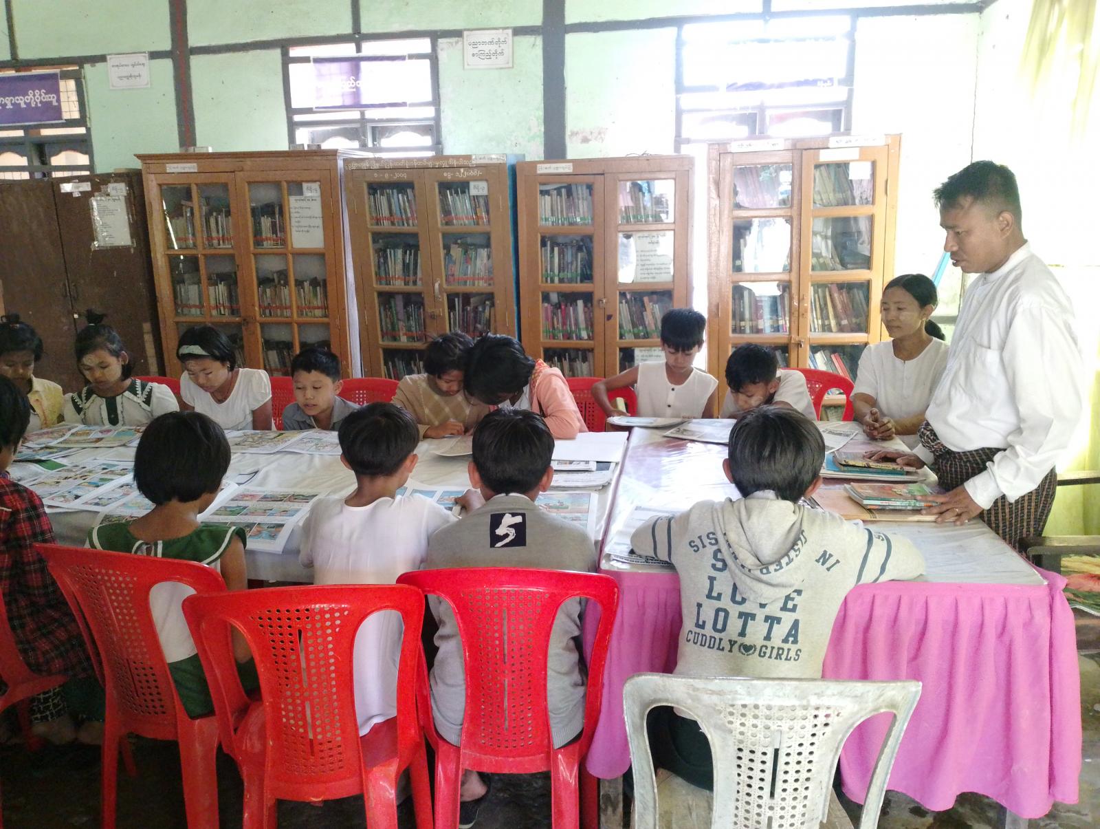 ထို့နောက် အခြေခံပညာမူလတန်းလွန်(မြို့သစ်)ကျောင်းမှ Grade-7 ကျောင်းသား/သူများက ယဉ်ကျေးလိမ္မာစာအုပ်ပါ အကြောင်းအရာများဖတ်ရှုကြပြီး၊ သိရှိလိုသည်များကို မေးမြန်းခဲ့ကြရာ မြို့နယ်ဦးစီးအရာရှိနှင့်စာကြည့်တိုက်လက်ထောက်-၃ ဒေါ်ဦးညွန့်ရီတို့က ပြန်လည်ရှင်းလင်း ဖတ်ကြားပေးခဲ့ကြောင်းသိရသည်။