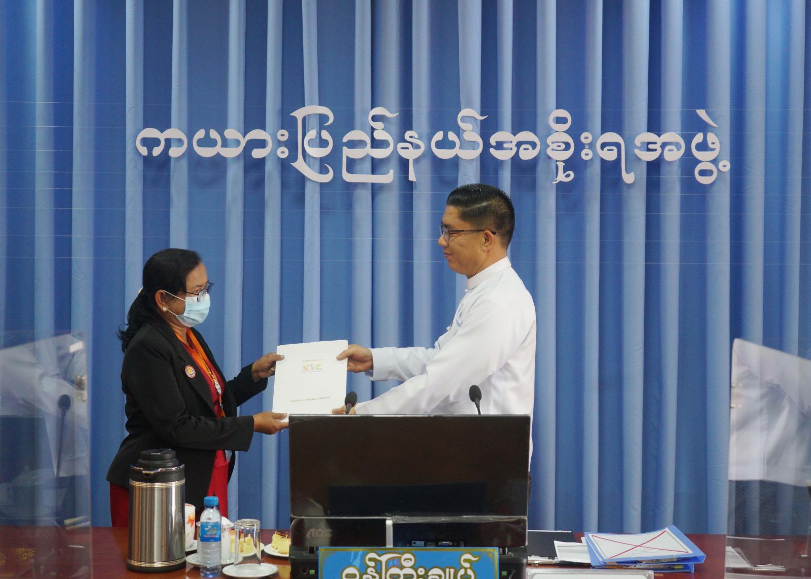 ထို့နောက် ကယားပြည်နယ်ရင်းနှီးမြှုပ်နှံမှု ကော်မတီ၏ (၄/၂၀၂၂) ကြိမ်မြောက် အစည်းအဝေး ဆုံးဖြတ်ချက်မှ ဆောင်ရွက်ပြီးစီးမှု အခြေအနေများ၊ ပြောင်းအခြောက်ခံ သန့်စင်ထုတ်လုပ်ရောင်းချခြင်း လုပ်ငန်းဆောင်ရွက်ရန်အတွက် လျှောက်ထားလာမှုများ၊ ရင်းနှီးမြှုပ်နှံမှုဆိုင်ရာ တည်ဆောက်ရေးလုပ်ငန်း ဆောင်ရွက်နေမှုအခြေအနေများကို ကော်မတီအတွင်းရေးမှူး ဒေါက်တာထွန်းထွန်းက တင်ပြဆွေးနွေးခဲ့သည်။