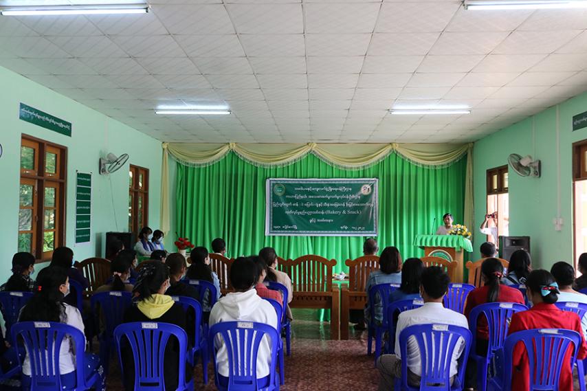 အခမ်းအနားတွင် ကယားပြည်နယ် အသေးစားစက်မှုလက်မှုလုပ်ငန်းဦးစီးဌာန ဒုတိယ ညွှန်ကြားရေးမှူး ဒေါ်အေးကျော့ခိုင်က အဖွင့်အမှာစကားပြောကြားရာတွင် “မိမိတို့ဒေသမှာရှိတဲ့ ပညာကိုဆုံးခန်းတိုင်အောင် မသင်နိုင်တဲ့ အမျိုးသမီးထုတွေအတွက် ဝင်ငွေရသည့် အလုပ်အကိုင်အခွင့်များရရှိရန် မိမိဒေသတွက် ပစ္စည်းများအား တန်ဖိုးမြှင့်ထုတ်ကုန်များ ထုတ်ကုန်များအဖြစ် ထုတ်လုပ်နိုင်စေရန်အတွက် ဖွင့်လှစ်ပေးခြင်းဖြစ်ပြီး ဒီသင်တန်းမှာ အလေးထားသင်ယူလျက် လက်တွေ့ဘဝတွင် အကျိုးရှိရှိအသုံးချသွားစေလိုကြောင်း” ပြောကြားခဲ့ပြီး ကယားပြည်နယ် အလုပ်သမားညွှန်ကြားရေးဦးစီးဌာနမှ ဒုတိယညွှန်ကြားရေးမှူး ဦးတင်ဝင်းက အမှာစကားဆက်လက်ပြောကြားသည်။