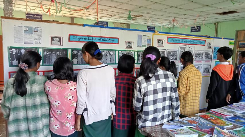 ဆက်လက်ပြီး နံရံကပ်စာစောင်နှင့်ဓာတ်ပုံပြပွဲအားကျင်းပခဲ့ရာ ဓာတ်ပုံပြပွဲတွင်လွတ်လပ်ရေး ဗိသုကာအမျိုးသားခေါင်းကြီး ဗိုလ်ချုပ်အောင်ဆန်း၏ လှုပ်ရှားမှုသမိုင်းဝင်ပုံရိပ်များ၊ လွတ်လပ်ရေးကြိုးပမ်းမှုကာလ၌လူထုစည်းရုံးရေးလှုပ်ရှားမှုများ ဟောပြောပွဲများနှင့် သမိုင်း ဝင်မှတ် တမ်းဓာတ်ပုံများနှင့်အတ္ထုပ္ပတ္တိများပြည်တောင်စုနေ့ဖြစ်ပေါ် လာပုံအမိုင်းအကျဥ်းများ၊ နံရံကပ်စာစောင်ပြပွဲတွင် မူးယစ်ဆေးဝါးနှင့်စိတ်ကို ပြောင်းလဲတတ်စေတတ်သောဆေးဝါးများ အန္တရာယ်အကြောင်းအရာများနှင့် ကလေးအလုပ်သမားများပပျောက်ရေးအတွက် ဥပဒေ အကြောင်းအရာများအား ဝေဝေဆာဆာဖြင့် ပြသဆောင်ရွက်ထားရှိခဲ့ရာစာပေမြတ်နိုးသူ ကျောင်းသား/ကျောင်းသူများနှင့်စာငှား စာဖတ်ပရိသတ်များက စိတ်ပါဝင်စားစွာလေ့လာ ကြည့်ရှုခဲ့ကြရာ မြို့နယ်ဦးစီးအရာရှိက သိရှိလိုသည်များအား လိုက်လံရှင်လင်းပြသခဲ့ ကြောင်း သိရသည်။