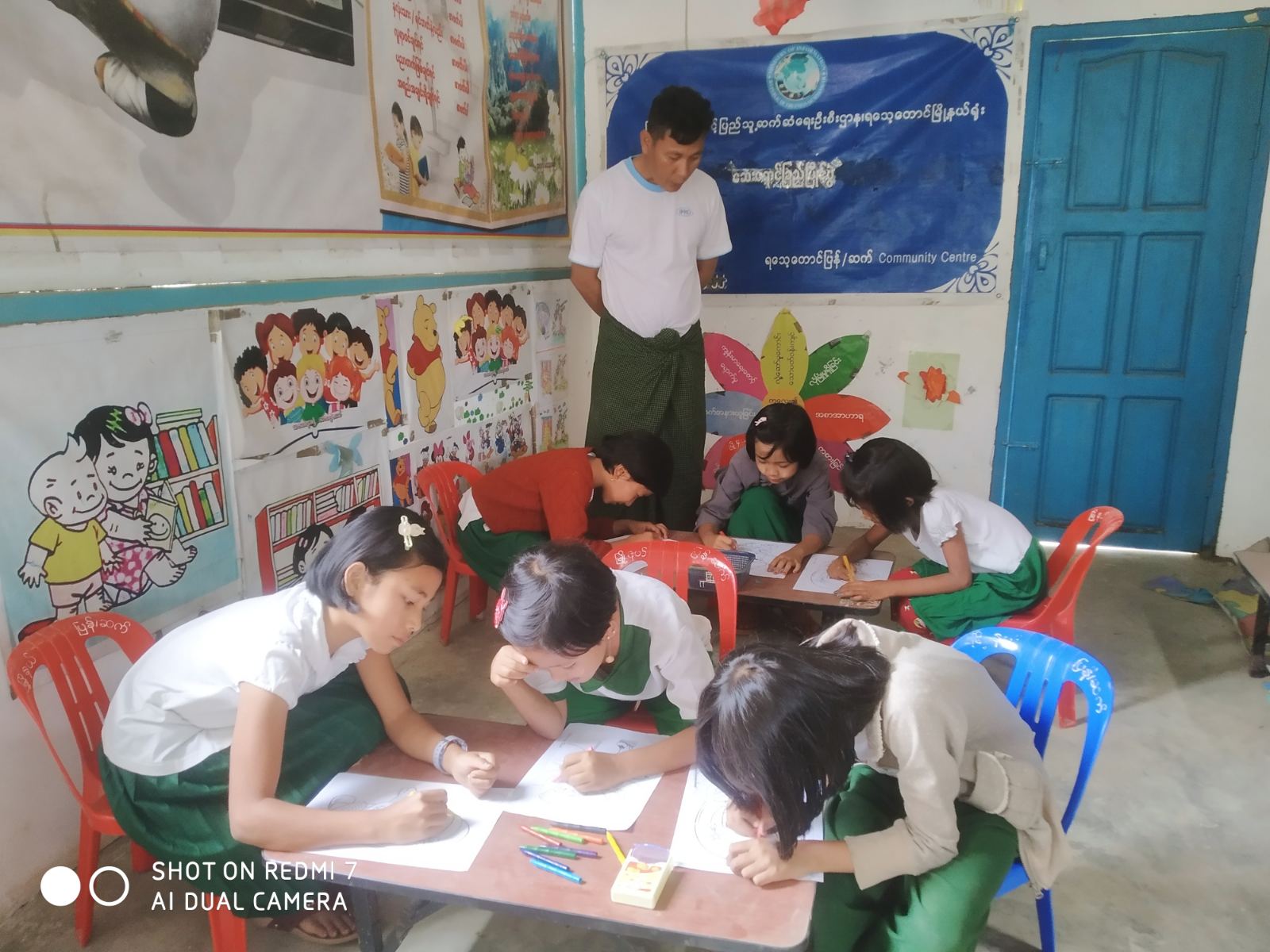 ထိုနောက် ဆေးရောင်ခြယ်ပြိုင်ပွဲကိုကျင်းပပြုလုပ်ကြရာ ရုပ်ပုံနှင့်ဆေးရောင်ခြယ်သမှုအကောင်းဆုံးကျောင်းသား၊ ကျောင်းသူ(၃)ဦးအား အမှတ်တရလက်ဆောင်များပေးအပ်ခဲ့ကြောင်းသိရသည်။