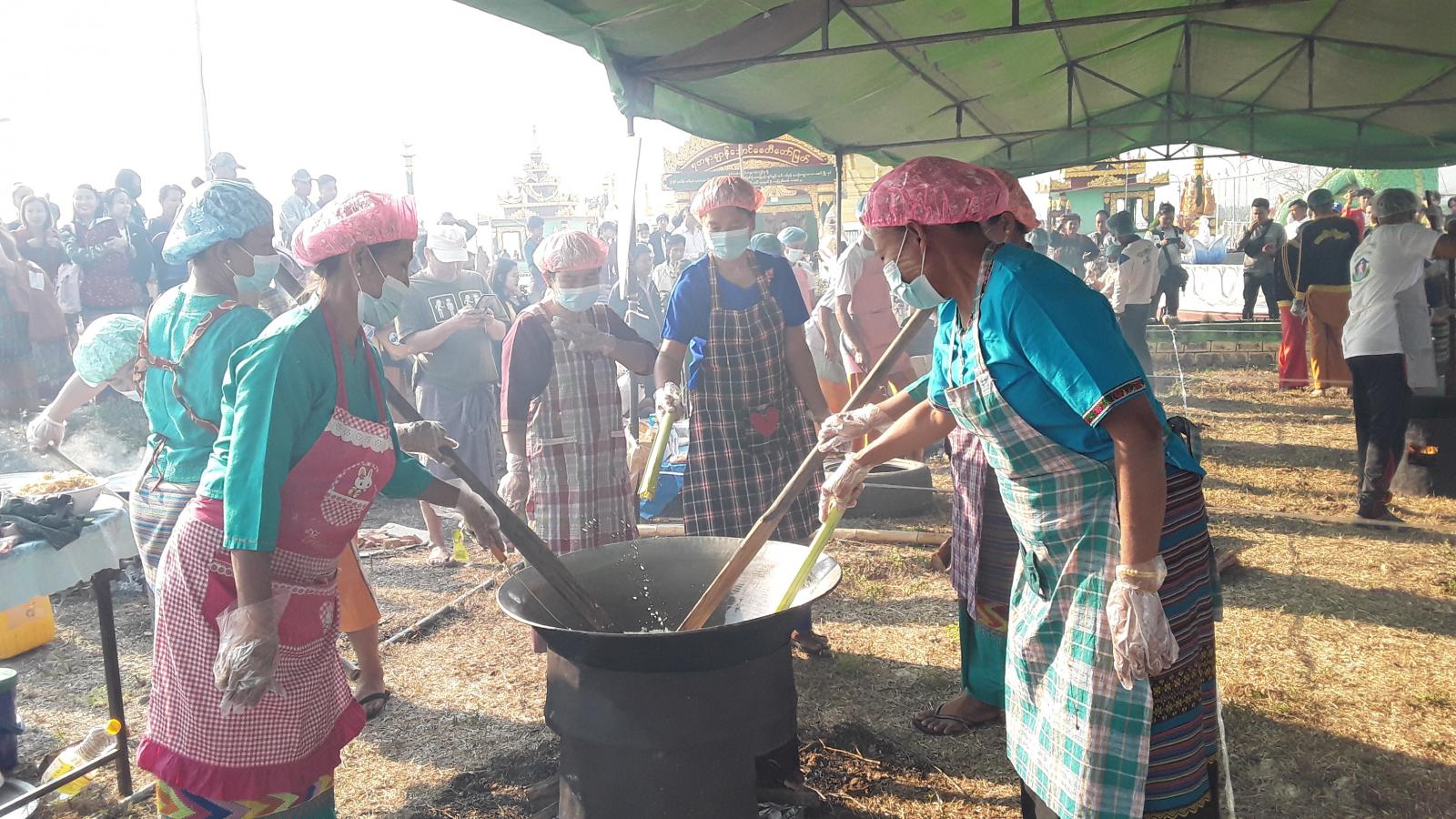 မြန်မာ့ရိုးရာစုပေါင်းထမနဲထိုးပြိုင်ပွဲတွင် ဌာနဆိုင်ရာများ၊ ရပ်ကွက်များနှင့်ကျေးရွာများမှ အသင်းအဖွဲ့စုစုပေါင်း(၆)ဖွဲ့တို့က မြန်မာ့ရိုးရာအစဉ်အလာနှင့်အညီ တပျော်တပါး ပါဝင်ယှဉ်ပြိုင်ဆင်နွဲခဲ့ကြကြောင်းနှင့် ဆုရရှိသောအသင်းအဖွဲ့များအား တပေါင်းလပြည့်နေ့ ရတနာစျာန်အောင်စေတီတော်ကြီးတွင် သံဃာတော် အရှင်သူမြတ်တို့အား ဆွမ်းဆန်စိမ်းလောင်းလှူပြီးဆုများကို ပေးအပ်ချီးမြှင့်ပေးသွားမည်ဖြစ်ကြောင်း သိရသည်။