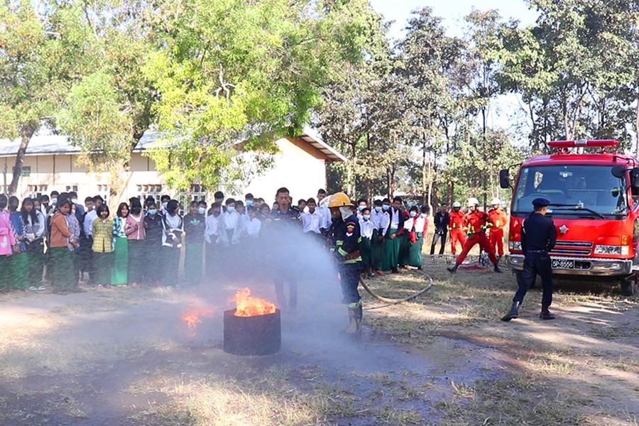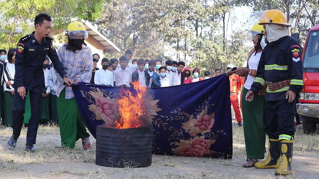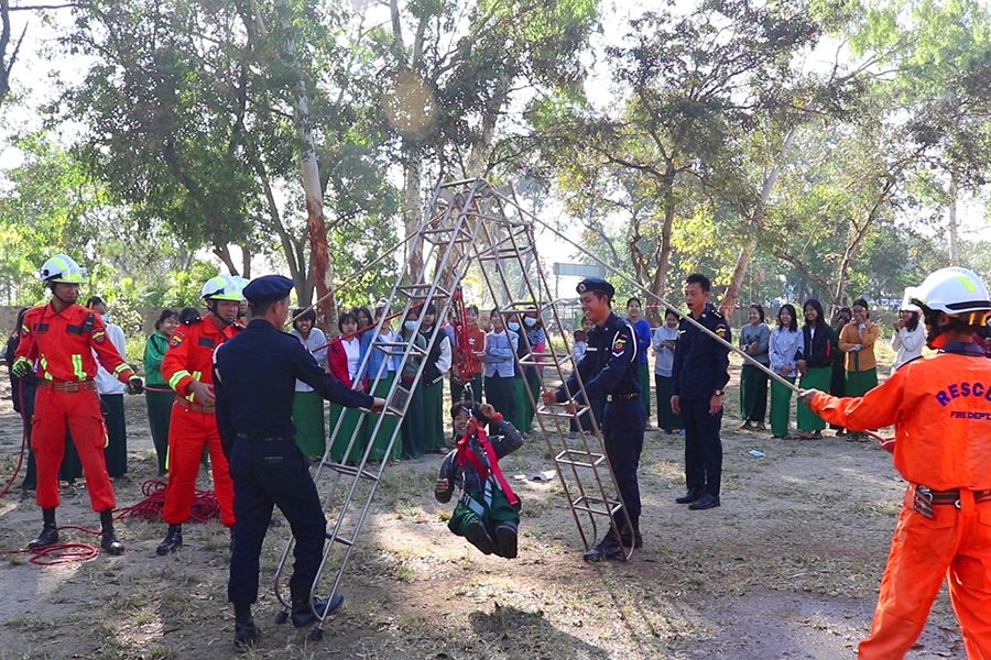 ထို့နောက် ဓါတ်ဆီဆိုင်များတွင်မီးလောင်ပါက မီးငြိမ်းသတ်ပုံများနှင့် ရေတွင်းအတွင်းမှ လူကိုကယ်ဆယ်နည်းများကို လက်တွေ့သရုပ်ပြသရာ ကျောင်းသား ကျောင်းသူများမှ ပူးပေါင်းပါဝင် ဆောင်ရွက်ခဲ့ကြသည်။