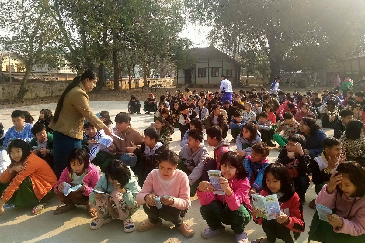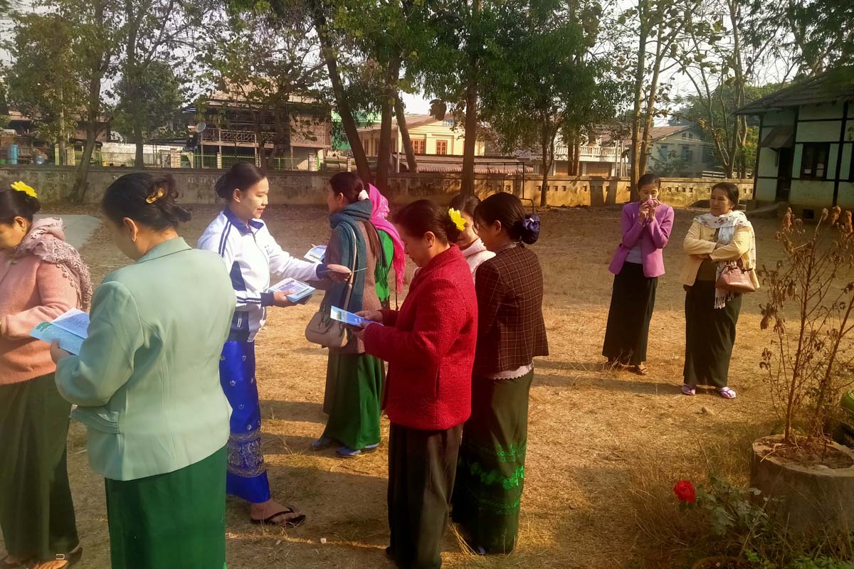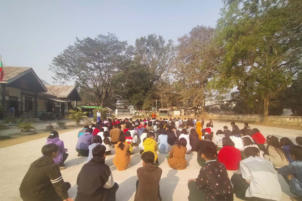 ထို့နောက် မြို့နယ်ပြန်ကြားရေးနှင့်ပြည်သူ့ဆက်ဆံရေးဦးစီးဌာန ဝန်ထမ်းများက ၂၀၂၃ခုနှစ်၊ ဖေဖော်ဝါရီလ (၁၂)ရက်နေ့တွင် ကျရောက်မည့် (၇၆)နှစ်မြောက် ပြည်ထောင်စုနေ့အထိမ်းအမှတ် သတင်းစကား လက်ကမ်းစာစောင်များအား ဆရာ၊ ဆရာမများနှင့် ကျောင်းသား၊ ကျောင်းသူများအား ဖြန့်ဝေပေးခဲ့ကြောင်း သိရသည်။