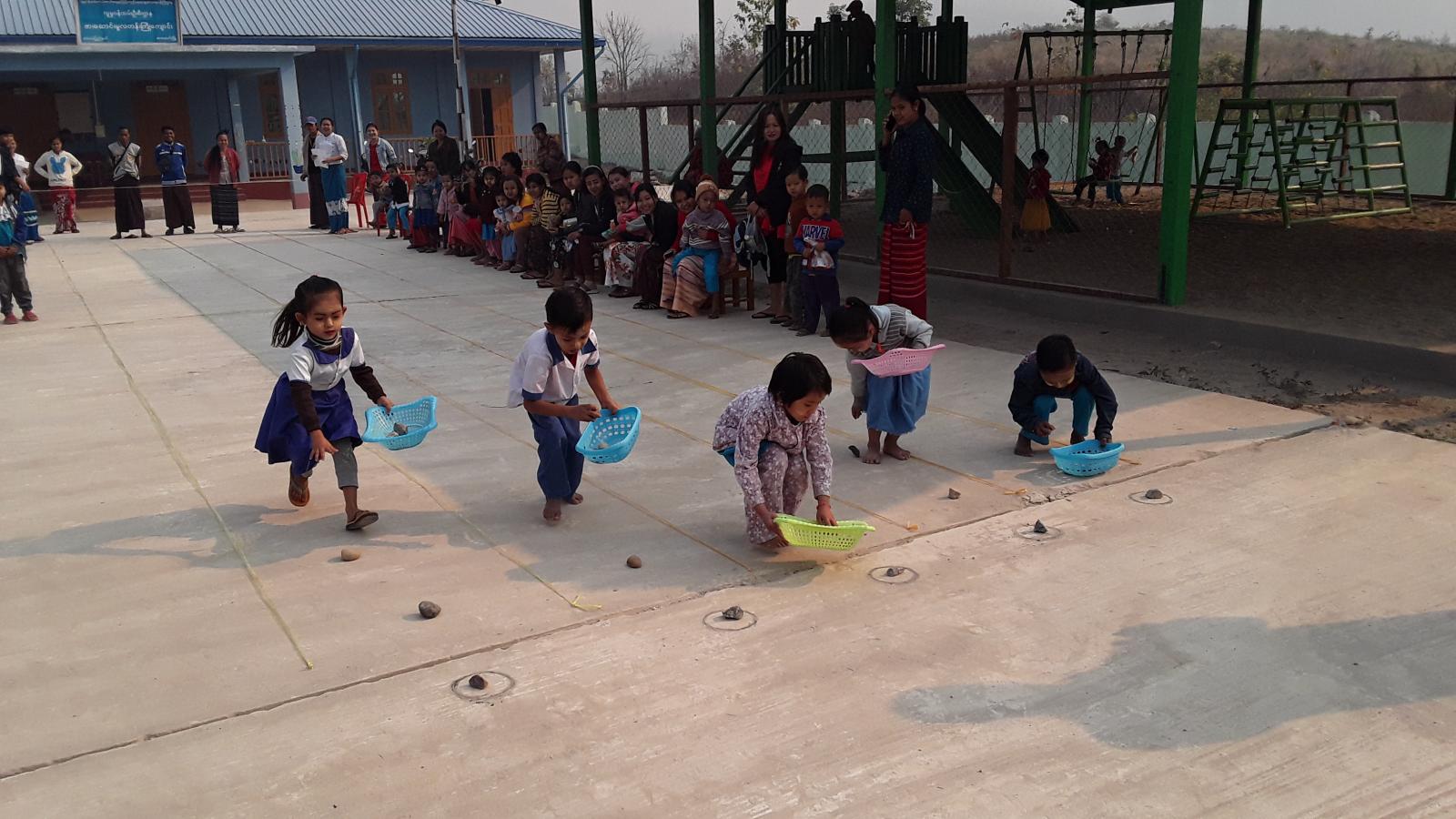 အားကစားပြိုင်ပွဲများမှာ အာလူးကောက်ပြိုင်ပွဲ၊ အပြေးပြိုင်ပွဲ၊ ဖားခုန်ခုန်ပြိုင်ပွဲ၊ ဖိနပ်စီးပြိုင်ပွဲများဖြစ်ပြီး အားကစားပြိုင်ပွဲများကျင်းပနေမှုကို မြို့နယ်စီမံအုပ်ချုပ်ရေးအဖွဲ့ဥက္ကဋ္ဌ၊ မြို့နယ်အုပ်ချုပ်ရေးမှူးဦးသက်မြင့်ဦးနှင့်အဖွဲ့ဝင်များ၊ ကျောင်းသားမိဘများ၊ ရပ်မိ၊ ရပ်ဖများက ကြည့်ရှုအားပေးခဲ့ကြကြောင်း သိရသည်။