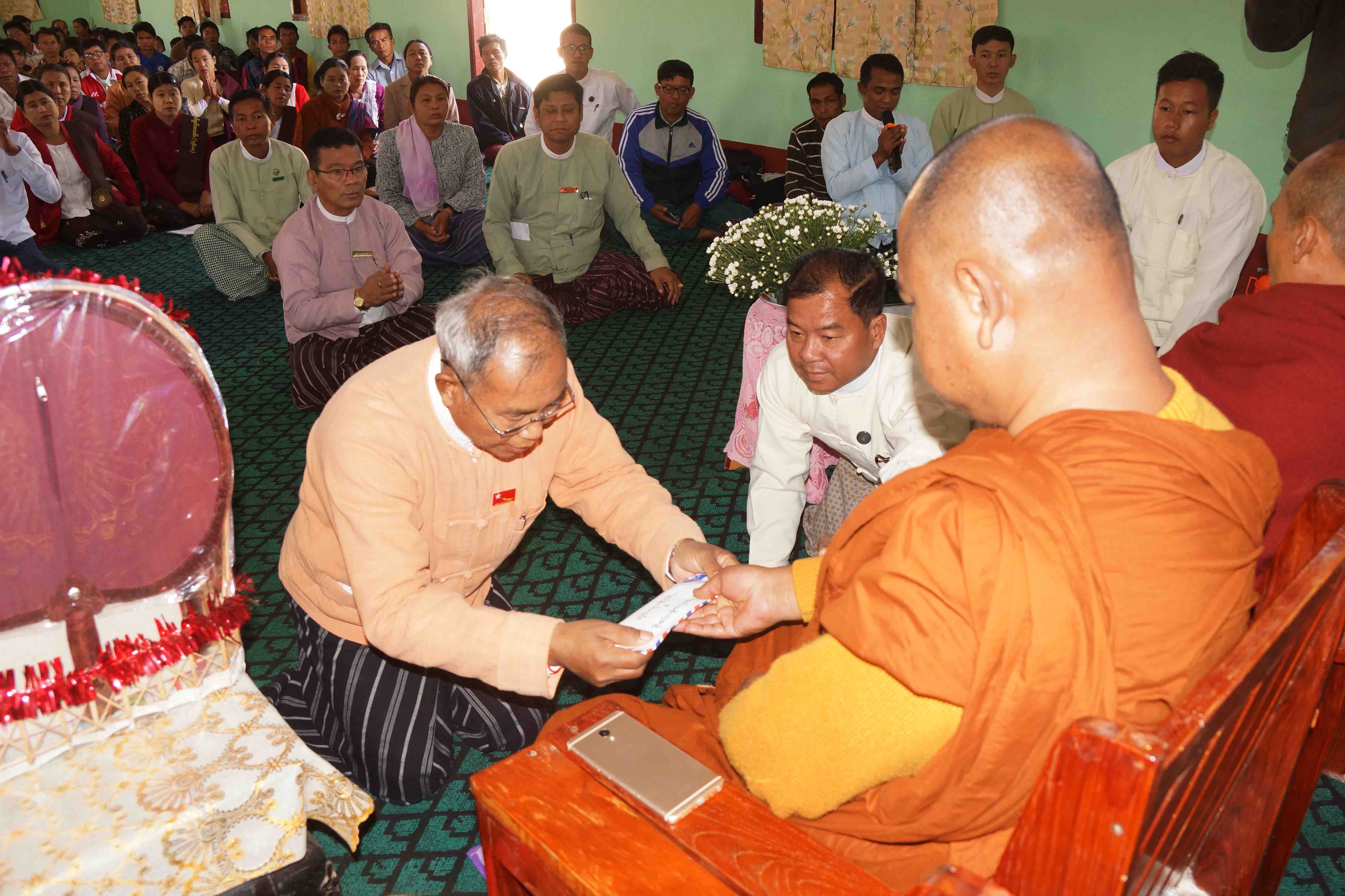 ထို့နောက် ကယားပြည်နယ်အစိုးရအဖွဲ့ စီမံကိန်းနှင့်ဘဏ္ဍာရေးဝန်ကြီး ဦးမော်မော်အမှူးပြုသော ပရိသတ်အပေါင်းတို့က ပြည်နယ်သံဃနာယက အဖွဲ့ဥက္ကဋ္ဌ၊ လွိုင်ကော်မြို့ ကျောင်းထိုင်ဘုန်းကြီး သင်တန်းကျောင်း ဆရာတော် ဘဒ္ဒန္တပညာစက္က(အဂ္ဂမဟာသဒ္ဓမ္မဇောတိကဓဇ) ထံ ငါးပါးသီလ ခံယူ ဆောက်တည် ကြသည်။