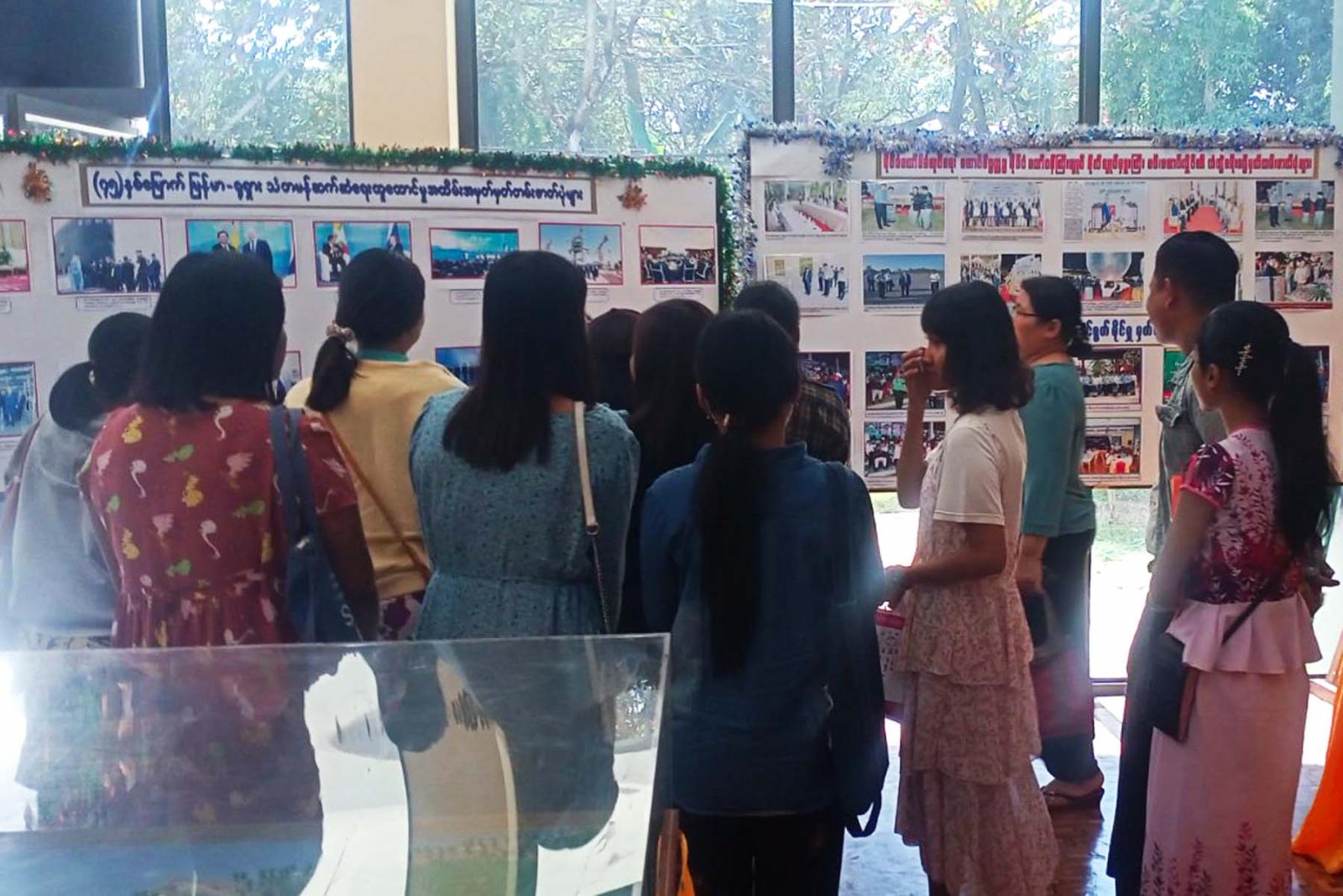 ရှေးဦးစွာ ပြန်ကြားရေးနှင့် ပြည်သူ့ဆက်ဆံရေးဉီးစီးဌာနမှ လက်ထောက်ညွှန်ကြားရေးမှူး ဒေါ်စန္ဒာကြည်က စာအုပ်ပြပွဲနှင့် နံရံကပ် စာစောင်ပြပွဲများအား ကျင်းပရသည့်ရည်ရွယ်ချက်များနှင့် မိမိတို့ဌာနအနေဖြင့် Digital စနစ်ဖြင့် စာကြည့်တိုက်ဝန်ဆောင်မှုပေးနေသည့်အခြေအနေများကို ရှင်းလင်းပြောကြားသည်။ ထို့နောက်ပြပွဲသို့တက်ရောက်လာကြသူများက နံရံကပ်စာစောင်နှင့် စာအုပ်ပြပွဲတွင် ခင်းကျင်းပြသထားသော စာအုပ်စာစောင်များကို စိတ်ပါဝင်စားစွာ လေ့လာကြည့်ရှုကြသည်။