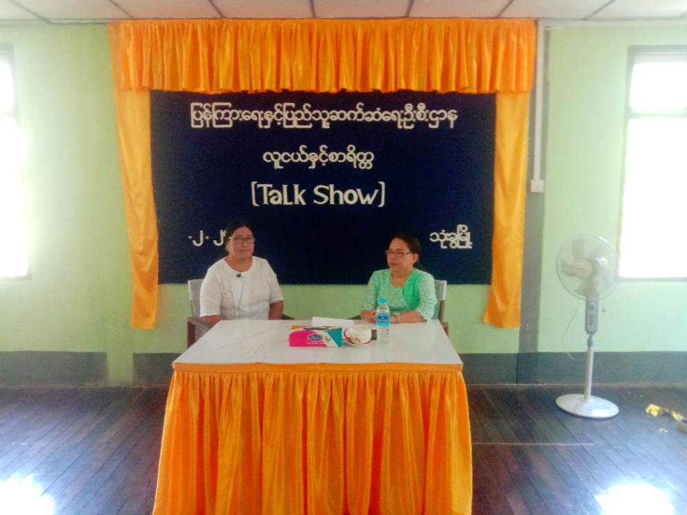 ရန်ကုန်တိုင်းဒေသကြီး၊ တောင်ပိုင်းခရိုင်၊ သုံးခွမြို့နယ် လူထုအခြေပြုဗဟိုဌာန Community Centre ခန်းမ၌ လူငယ်နှင့်စာရိတ္တအသိပညာပေး Talk Show ကို ယနေ့နံနက် ၉ နာရီအချိန်က ကျင်းပပြုလုပ်ခဲ့သည်။