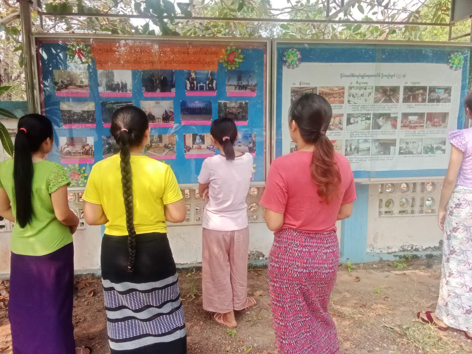 အဆိုပါနံရံကပ်ပြဘုတ်တွင် မြန်မာနိုင်ငံသမ္မတများနှင့် ရုရှားဖက်ဒရေးရှင်းနိုင်ငံမှ အကြီးအကဲများ နှင့် တွေ့ဆုံဆွေးနွေးမှုမှတ်တမ်းဓာတ်ပုံများ၊ စီးပွားရေးအမြင်ချင်း ဖလှယ်ဆောင်ရွက်ချက် မှတ်တမ်းဓာတ်ပုံများ၊ စည်းဝေးပွဲတက်ရောက်မှုမှတ်တမ်းဓာတ်ပုံများ၊ နိုင်ငံပိုင်တည်ဆောက်ရေးလုပ်ငန်းများအား လေ့လာကြည့်ရှုမှု မှတ်တမ်းဓာတ်ပုံများအား ဝေဝေဆာဆာပြသထားရှိရာ ကျောင်းသား/ကျောင်းသူများ၊ မိဘပြည်သူများမှ စိတ်ပါဝင်စားစွာ လေ့လာကြည့်ရှုခဲ့ကြကြောင်း သိရသည်။