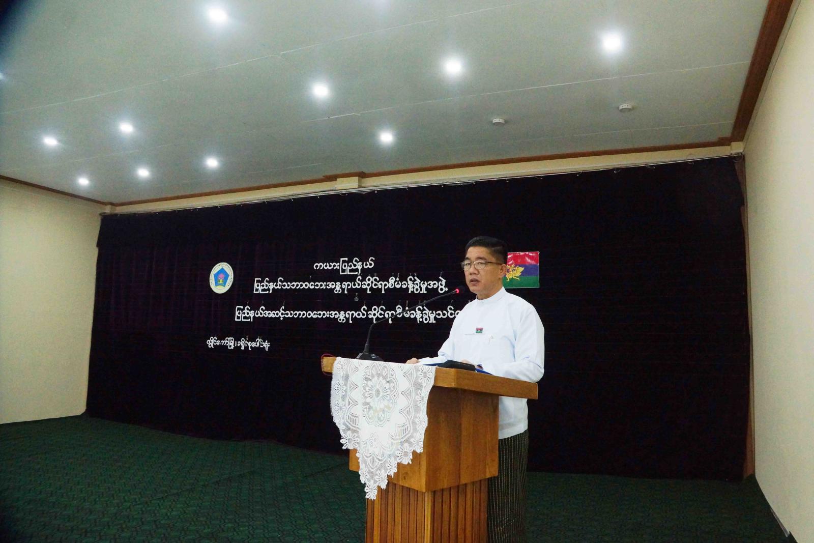 ကယားပြည်နယ် သဘာဝဘေးအန္တရာယ်ဆိုင်ရာစီမံခန့်ခွဲမှုသင်တန်း ဖွင့်ပွဲကို ယနေ့နံနက်ပိုင်းတွင် လွိုင်ကော်ခရိုင်စုပေါင်းရုံးခန်းမဆောင်၌ ကျင်းပပြုလုပ်ရာ ကယားပြည်နယ်အစိုးရအဖွဲ့၊ ပြည်နယ်ဝန်ကြီးချုပ် ဦးဇော်မျိုးတင်နှင့် ပြည်နယ်အစိုးရအဖွဲ့ဝင်များ၊ ဌာနဆိုင်ရာအသီးသီးနှင့် လူမှုရေးအသင်းအဖွဲ့များမှ တာဝန်ရှိသူများ၊ သင်တန်းနည်းပြများနှင့် သင်တန်းသား/ သင်တန်းသူများ တက်ရောက်ခဲ့ကြသည်။