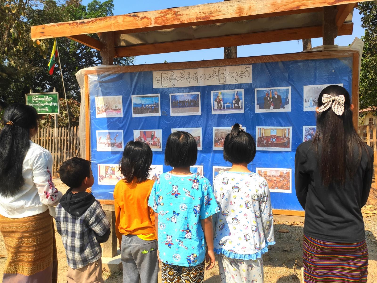 ရှမ်းပြည်နယ်တောင်ပိုင်း၊ မိုးနဲမြို့နယ်၊ ကျိုင်းတောင်းမြို့ ပြန်ကြားရေးနှင့် ပြည်သူ့ဆက်ဆံရေးဦးစီးဌာန ရုံးရှေ့မြေစိုက် နံရံကပ်ပြဘုတ်တွင် မြန်မာ-ရုရှားသံတမန်ဆက်ဆံရေး ထူထောင်မှုအထိမ်းအမှတ် မှတ်တမ်းဓာတ်ပုံများကို ပြသဆောင်ရွက်ထားလျက်ရှိရာ ကျိုင်းတောင်းမြို့ရှိ စာငှားစာဖတ်ပရိသတ်များက လာရောက်လေ့လာကြည့်ရှုခဲ့ကြောင်း သိရသည်။