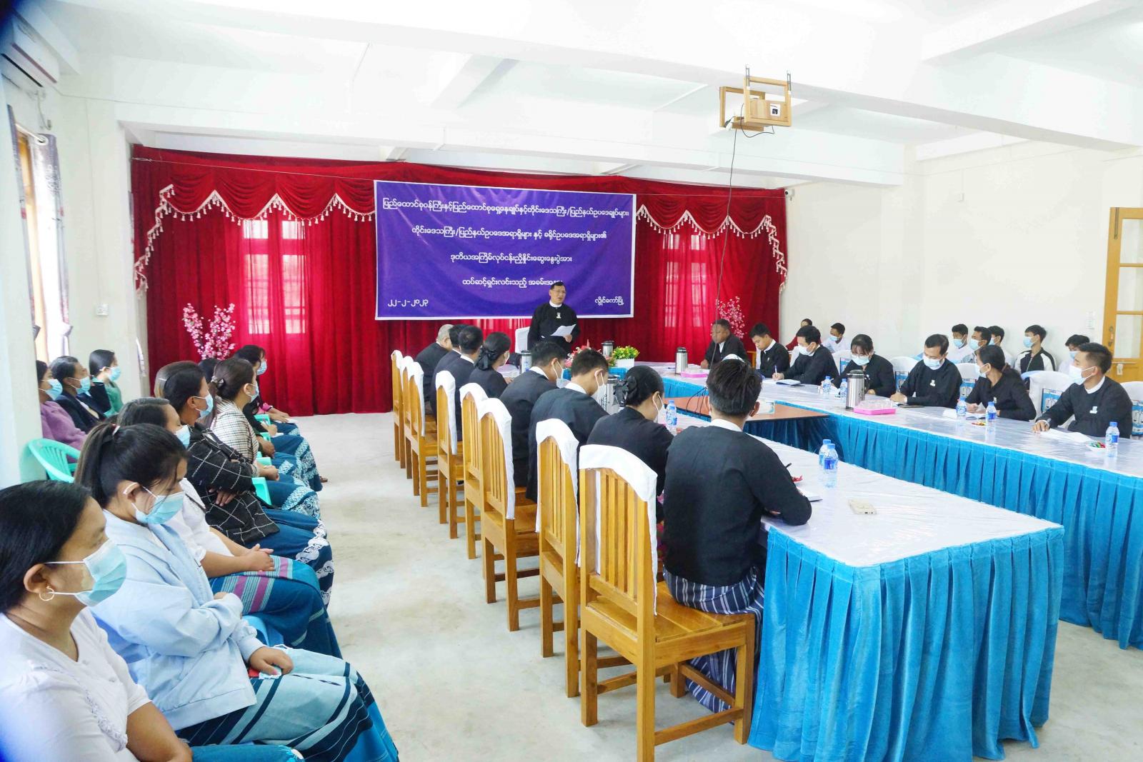 ပြည်ထောင်စုဝန်ကြီး၊ ပြည်ထောင်စုရှေ့နေချုပ်နှင့် တိုင်းဒေသကြီး/ပြည်နယ်ဥပဒေချုပ်များ၊ တိုင်းဒေသကြီး/ပြည်နယ် ဥပဒေအရာရှိများနှင့် ခရိုင်ဥပဒေအရာရှိများ၏ ဒုတိယအကြိမ် လုပ်ငန်းညှိနှိုင်းဆွေးနွေးပွဲအား ထပ်ဆင့်ရှင်းလင်းခြင်းကို ယမန်နေ့နံနက် ၁၀ နာရီအချိန်က လွိုင်ကော်မြို့၊ ကယားပြည်နယ်ဥပဒေချုပ်ရုံး အစည်းအဝေးခန်းမ၌ကျင်းပရာ ကယားပြည်နယ်ဥပဒေချုပ် ဦးကြည်မြိုင်၊ ကယားပြည်နယ် ဥပဒေအရာရှိ ဦးဇော်ဝင်းဇံနှင့် ပြည်နယ်အတွင်းရှိ ခရိုင်ဥပဒေအရာရှိများ၊ မြို့နယ်ဥပဒေအရာရှိများနှင့်ရုံးဝန်ထမ်းများ တက်ရောက်ခဲ့သည်။