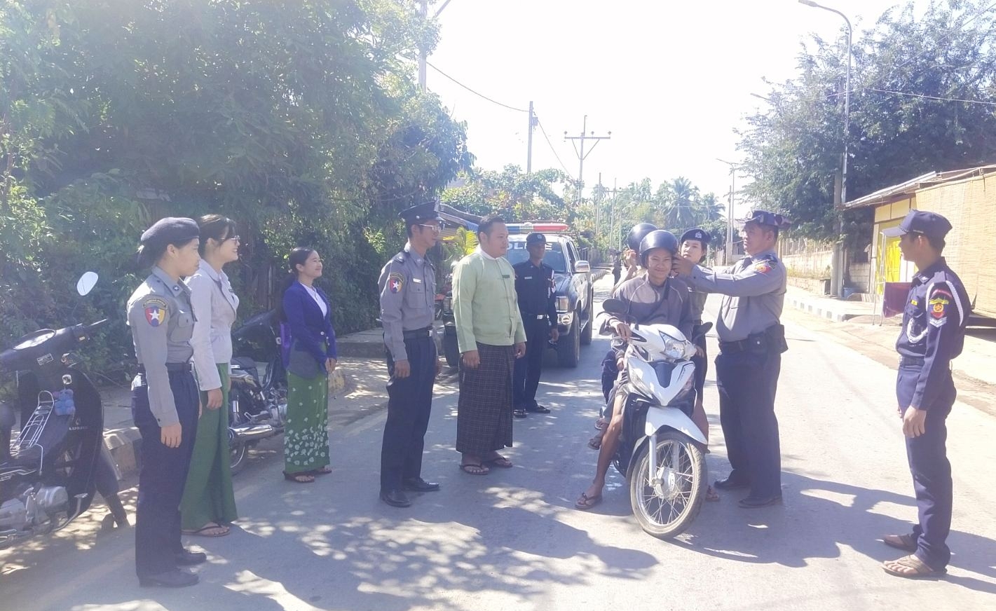 ထို့သို့ဆောင်ရွက်ရာတွင် မြို့နယ်အထွေထွေအုပ်ချုပ်ရေးဦးစီးဌာန၊ မြို့နယ်ရဲတပ်ဖွဲ့၊ မြို့နယ်မီးသတ်တပ်ဖွဲ့၊ မြို့နယ်စည်ပင်သာယာရေးအဖွဲ့တို့ ပူးပေါင်း၍ မြို့တွင်းသွားလာနေသော မော်တော်ယာဉ်များ၊ မော်တော်ဆိုင်ကယ်များ၊ ထော်လာဂျီများအား ယာဉ်စည်းကမ်း၊ လမ်းစဉ်းကမ်း လိုက်နာမှု ရှိ/မရှိ စစ်ဆေးဆောင်ရွက်ခဲ့ပြီး မြို့တွင်းသို့မောင်းနှင်ပါက အရှိန်လျှော့မောင်းနှင်ရန်၊ စည်းကမ်း ဖောက်ဖျက် မောင်းနှင်မှုများကြောင့် သေဆုံးဒဏ်ရာရမှုဖြစ်စဉ်များ ဖြစ်ပွားခဲ့ကြောင်း၊ ယာဉ်တိုက်မှု ဖြစ်ပွားရာတွင် အရေးယူဆောင်ရွက်သည့် ပြစ်မှုဆိုင်ဥပဒေပုဒ်မများနှင့် ပြစ်ဒဏ်များ၊ မော်တော်ယာဉ်၊ မော်တော်ဆိုင်ကယ် မောင်းနှင်ရာတွင် လိုက်နာဆောင်ရွက်ရမည့် အချက်များကို အသိပညာပေး ပြောကြားခဲ့ကြောင်း သိရသည်။