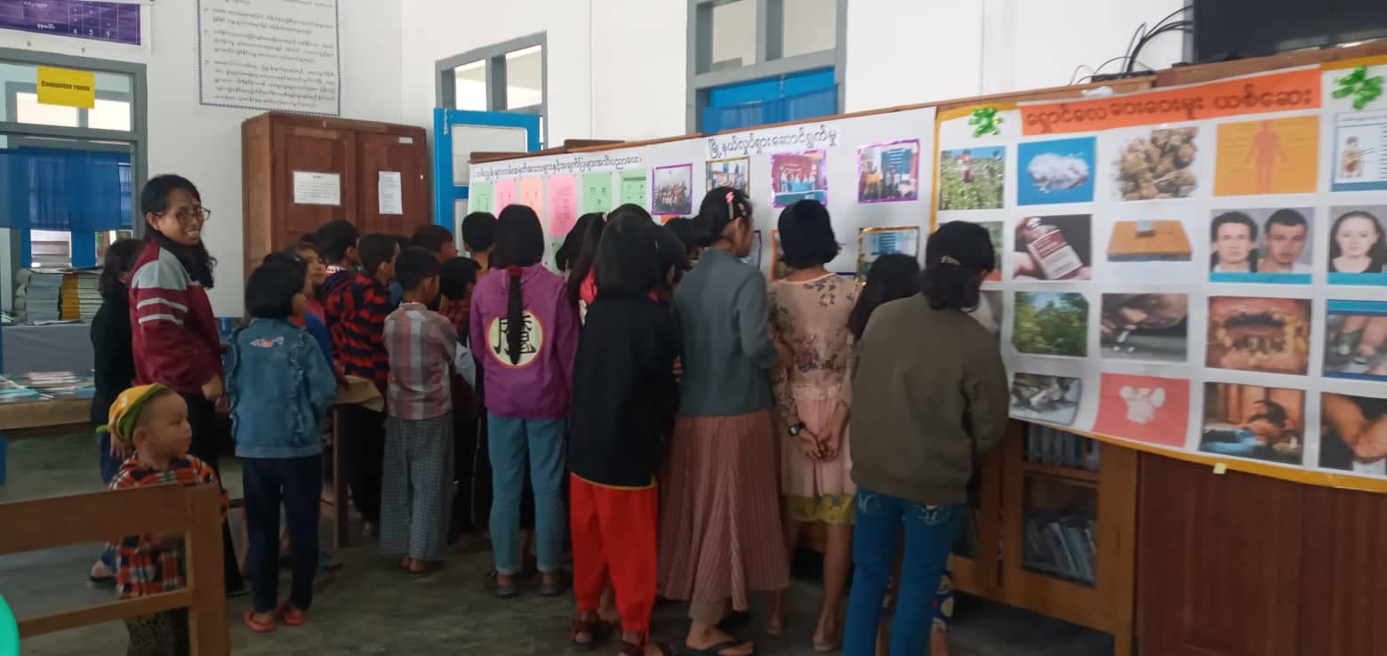 ဆက်လက်၍ ဟောပြောပွဲ တက်ရောက်လာကြသော စာဖတ်ပရိတ်သတ် ကျောင်းသားကျောင်းသူ (၃၀) ဦးတို့က ခင်းကျင်းပြသထားသော လမ်းညွှန်းအမှတ်အသားများ၊ လမ်းအမှတ်အသားများအချက်ပြ အသိပညာပေးနံရံကပ်စာစောင်၊ ရှောင်လေဝေးဝေးမူးယစ်ဆေး အသိပညာပေး နံရံကပ်စာစောင်နှင့် သုတရသစာအုပ်စာစောင်များ ကိုစိတ်ဝင်တစားလေ့လာ ကြည့်ရှုခဲ့ကြကြောင်း သိရှိရပါသည်။
