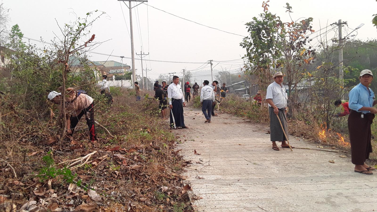 ထိုသို့ စုပေါင်းသန့်ရှင်းရေးဆောင်ရွက်မှုကို မြို့နယ်စီမံအုပ်ချုပ်ရေးအဖွဲ့ဥက္ကဋ္ဌ၊ မြို့နယ်အုပ်ချုပ်ရေးမှူး၏ လမ်းညွှန်မှုဖြင့် မြို့နယ်ရဲတပ်ဖွဲ့ဝင်များ၊ မြို့နယ်မီးသတ်တပ်ဖွဲ့ဝင်များ၊ ဌာနဆိုင်ရာဝန်ထမ်းများ စုစုပေါင်းအင်အား (၁၁၀) ဦးကမြောက်ပိုင်းရပ်ကွက်ရှိ ဌာနဆိုင်ရာရုံးများ၏ ဘေးပတ်ဝန်းကျင်နှင့်လမ်းဘေးတစ်လျှောက် ရှိသစ်ရွက်ခြောက်များ၊ သစ်ပင်များ၊ပေါင်းမြက်များ၊ အမှိုက်သရိုက်နှင့် ခြုံနွယ်များကို ခုတ်ထွင်ရှင်းလင်းဖယ်ရှားခဲ့ကြောင်း သိရသည်။